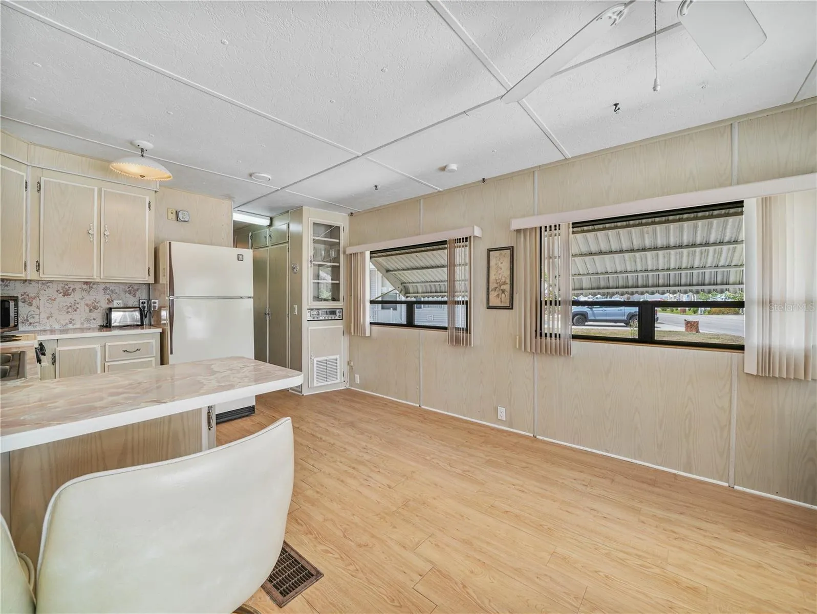 +"PublicRemarks": "One or more photo(s) has been virtually staged. You don't want to miss this retro 1/1 turnkey home in the beautiful 55+ gated community of Saddlebag Lake Resort, where you OWN THE LAND! Come for the winter or live here year round, this home is ready for you to move right in. The spacious ground floor is a combination living and dining room, comfortably furnished so you can sit down and relax. The full size kitchen and breakfast nook are upstairs, with plenty of cabinets so there's a place for everything. The hallway to the bedroom is where you'll find a pantry, laundry closet, complete with a washer and dryer ( 4 yrs.old), and a bathroom with tub and shower. The water heater is just four years old. The home backs to the orange grove, so you'll have no rear neighbors. You own the land here, and the low HOA dues includes your water, sewer and trash pick up, plus use of all the amenities. You'll feel like you're on vacation every day, with planned activities in the clubhouse, the sparkling community pool, screen enclosed hot tub, pickle ball and tennis courts, rec room with pool tables, fitness equipment and saunas, horse shoe pits and shuffleboard courts, not to mention fishing and boating in the lake! The beach house has a commercial kitchen and a lake side covered patio, and are available for you to use at no charge for private parties, just reserve it. There's even a driving range and dog park at the back of the resort. You owe it to yourself to check this out before it's gone, so call now!"