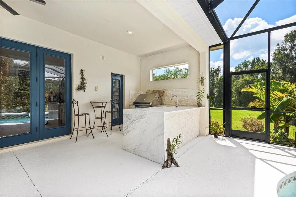 This home also offers custom ceiling lighting in the home theater and media room, with the option to purchase a new 85-inch Samsung Neo QLED TV and some of the furnishings in the home. Restoration Hardware window finishes with silk drapery are featured throughout. A newer HVAC system includes both 3-ton and 4-ton variable speed Trane units, as well as advanced Trane thermostats equipped with radar, weather forecasts, and alerts. A third-zone Mitsubishi split system is dedicated to the media room for personalized climate control. The spacious walk-in laundry room features great natural light. A three-car garage provides plenty of space for vehicles or golf carts. The saltwater pool, which is gentler on the skin, is heated with a paid-off passive solar system and has a new Pentair pump. There was no water intrusion during last 3 storms; the current mortgage company does not require flood insurance with the elevation status.\r\n