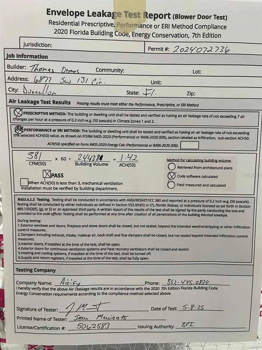 "LongDescription" => "BLOWER DOOR TEST RESULTS"