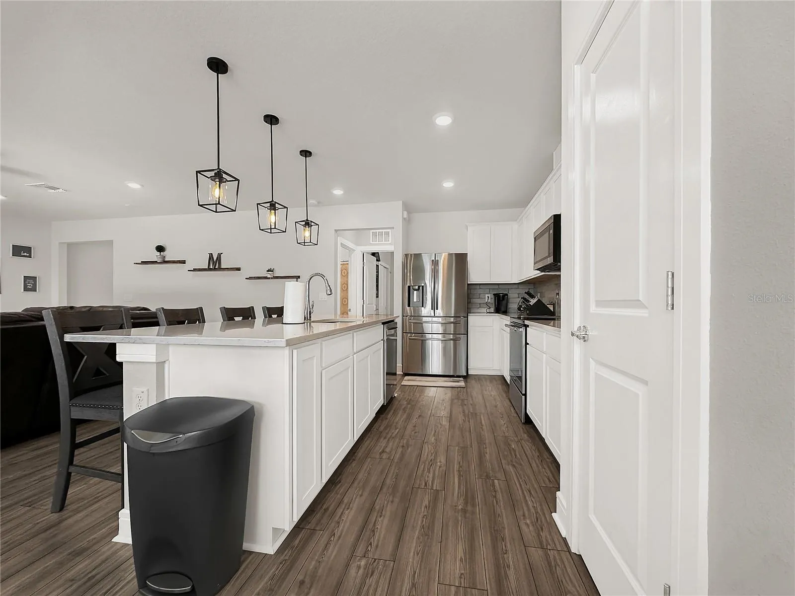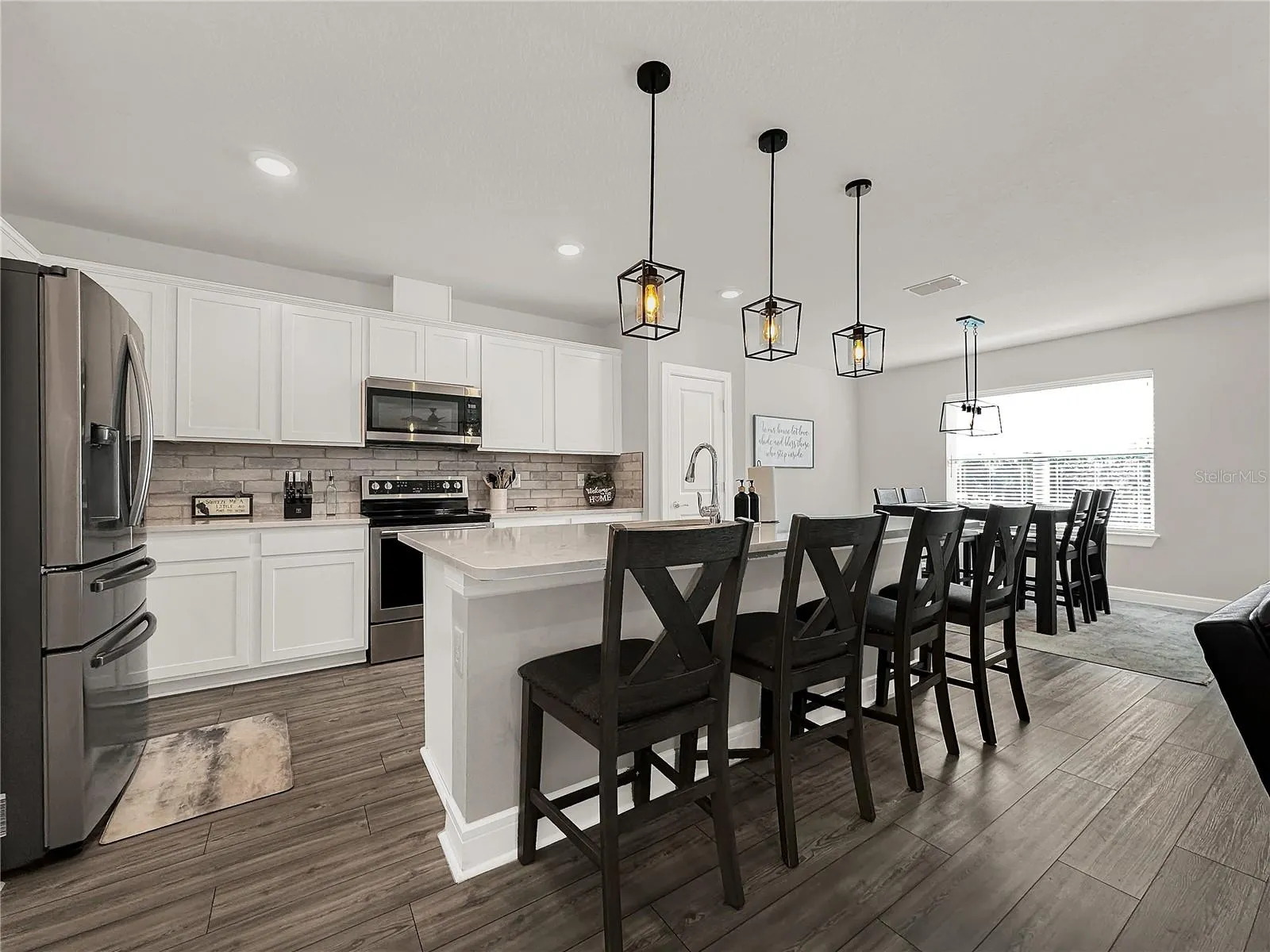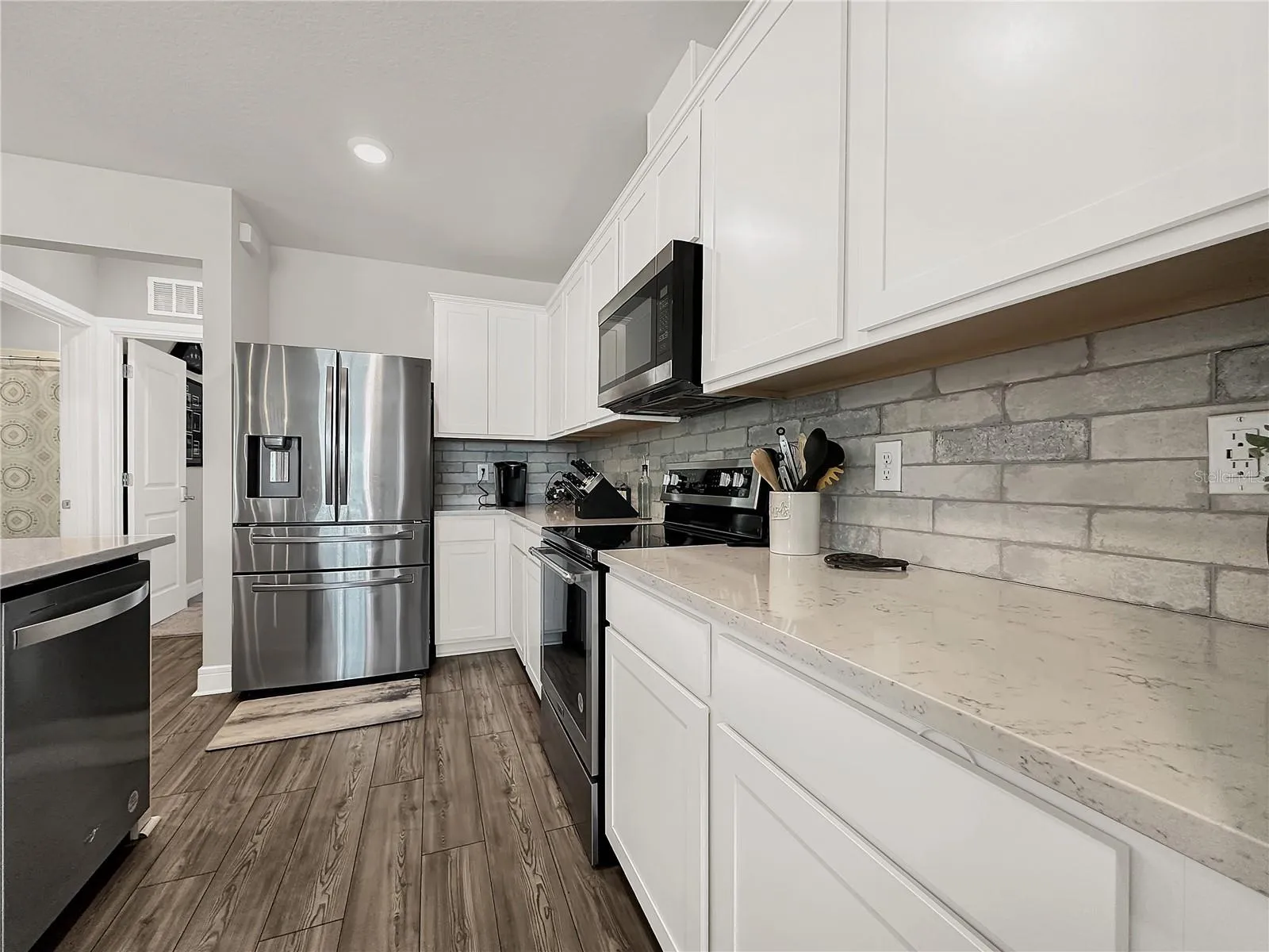 +"PublicRemarks": "Welcome to your new home located in the community of North River Ranch in beautiful Parrish Florida, this spacious 5-bedroom, 3-bathroom residence was constructed in 2022. An adjacent easement provides an additional buffer between you and one of your neighbors, while the back of the property overlooks a treed greenbelt with no rear neighbor. As you step inside, you'll be greeted by an open floor plan that facilitates effortless entertaining. The home features upgraded light fixtures and wood-plank style tile that seamlessly flows throughout the main living areas, creating a cohesive aesthetic. The kitchen is a culinary enthusiast's dream, equipped with stainless steel appliances, a decorative backsplash, natural granite countertops, a pantry, and a breakfast bar illuminated by pendant lighting. The expansive living space is filled with natural light, courtesy of sliding glass doors that open to a covered patio. The home offers one ample size bedroom on the first floor with a dedicated bathroom, as you ascend to the second floor, you will discover a bonus area and four generously sized bedrooms, including a spacious primary suite complete with an ensuite bathroom featuring dual sinks, a shower, and a walk-in closet. The remaining four bedrooms offer ample space for all your needs. A conveniently located laundry room enhances functionality. Located within the North River Ranch community, this home provides access to a wealth of amenities, including a community pool, dog park, fitness center, clubhouse, walking trails, and playground. With a short drive to I-75 and Highway 301, conveniently located to Tampa St pete, Bradenton beaches, Sarasota beaches, navigating the area is a breeze. This home is sure to impress—don't miss this great opportunity schedule your showing today."