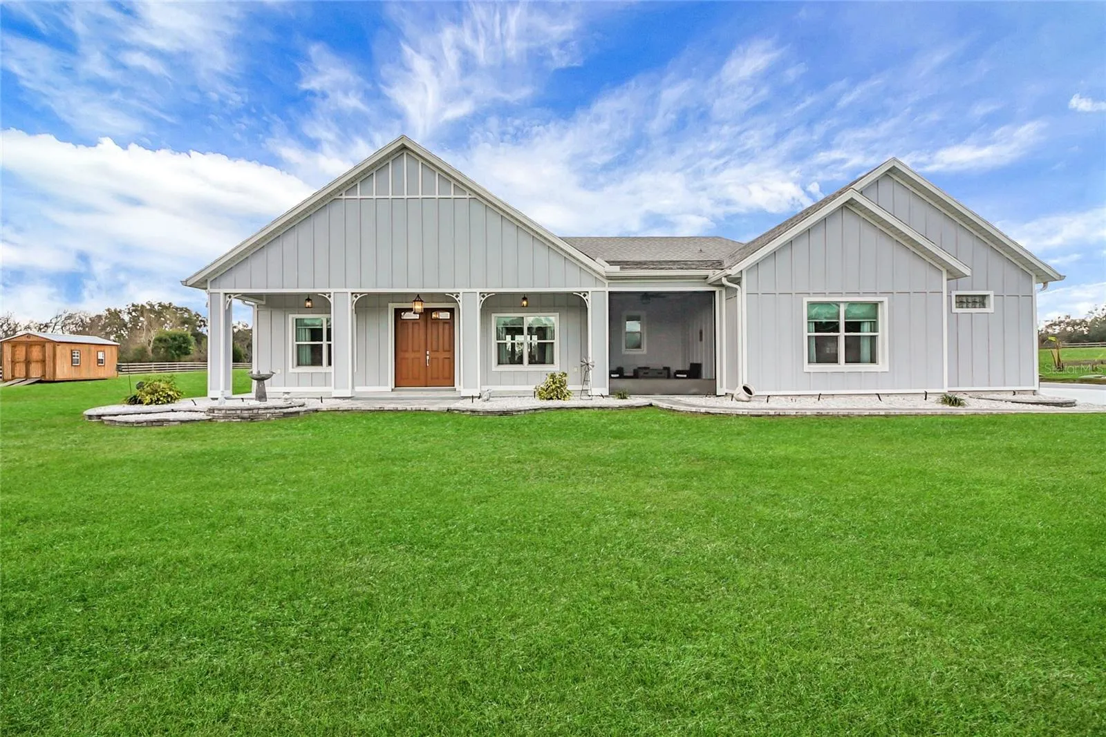 +"PublicRemarks": "Country living at its finest with this GORGEOUS BLOCK Home covered in Hardie Board planks giving the home a softer and country like feel! This 3 Bedroom + 2 Full bath + 1 Half Bath + Office + Bonus Room Custom BLOCK 2021 built home on 5 fenced ACRES is sure to check off all your boxes! This home will meet all your outdoor needs with a beautiful covered front porch (33 x 6’10) + a screened in side porch (13 x 10) + an extra large lanai (26 x 31) with a 6 person Hot Tub with lounger + a large paver patio area (22 x 15) + a 10 x 20 brown shed + a 10 x 16 cottage shed with electric + a large green house (12 x 17) and plenty of space for all your animals, horses and toys. From the start, when walking up to the house notice the grand 8 feet double doors inviting you to come and enjoy this one of a kind home! This open & split floorplan has volume ceilings, wood like tile flooring, 5 inch baseboards, 10 Ft ceilings, and tons of natural light! The living room showcases an elegant porcelain tile electric fireplace and plenty of space to relax from a busy day’s work!. The chef’s kitchen is impressive and adorned with the following: expansive breakfast bar with natural Quartzite stone countertops, farmers quantize sink, oversized (5 x 11'8) custom walk in pantry, extensive soft close cabinetry, high end fingerprint resistant stainless steel appliances, recessed & pendant lighting, and a coffee bar area. The large master bedroom has a tray ceiling and a romantic porcelain tile fireplace while the en suite has a large 9 x 4 shower with multiple shower heads & bench seating, a free standing Woodridge whirlpool & bath, a Woodbridge bidet toilet, and an oversized 17 x 14 California closet with pull out drawers and a sitting area. Beyond the master bedroom is an office area, an inside laundry room, and a half bath. Upstairs there is a large bonus (26 x 12) room that can be used for multiple purposes. The guest rooms can accommodate a full or queen bed. The guest full bath has a tub/shower combination. The oversized garage (30 x 23) has an epoxied flooring, water softener, split AC unit, plus a bonus storage area. This home has spray insulation which keeps the temperature cooler during longer periods of time and reducing the use of electricity. Convenient to shopping and The Villages, this homestead is just 10 mintues to Brownwood Town Square! With all these great features, what more could you ask for! Call today to set up an appointment to see this pristine home and start living your best life now! Copy & Paste the link to view the video: https://m.bixel1.net/uq3zz0"
