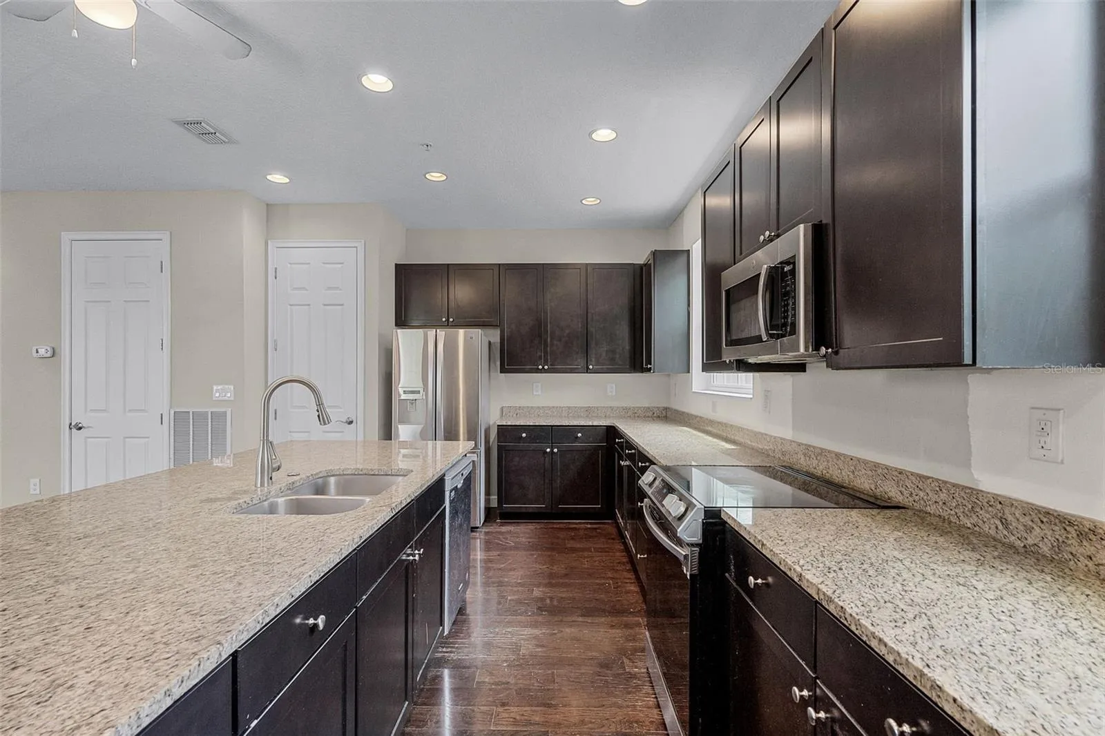 +"PublicRemarks": "WHAT A GORGEOUS TOWNHOME LOCATED IN BEAUTIFUL GRANDE OAKS AT HEATHROW.   THIS IS AN EXQUISITE CORNER TOWNHOME that offers four bedrooms, three and half baths and a two car garage.   The first floor offers a tiled entry way, bedroom with a ceiling fan, laminate flooring and a full bath with a full shower and vanity.  As you walk up to the second floor you enter into the large living room that has a ceiling fan, can lighting, tray ceiling, half bath and huge balcony for that morning coffee and is great for entertaining.  The beautiful kitchen has wood floors, granite countertops, 36 inch cabinets, stainless steel appliances, can lighting and a huge island with a breakfast bar.  The third floor has the Primary Bedroom with its own Balcony, laminate flooring, huge walk-in closet, ceiling fan and tray ceiling.  The Primary Bathroom has tile, dual sinks, vanity, whirlpool tub and a large shower.  Bedrooms two, three and four are on the third floor and all have laminate flooring, ceiling fans and large closets.  Bathroom three has a tub, shower and tile.  The washer and dryer are conveniently located on the third floor.  This townhome is just a hop, skip and jump to the community pool, clubhouse, fitness center and pond.  The Grande Oaks community is strategically located to shopping, health, wellness and is just minutes from I-4, State Road 417 and State Road 429.  The home has a brand new roof, window and doors all provided by the HOA.  The Homeowners Association includes, trash, sewer and high speed fiber internet.  THE PROPERTY IS CURRENTLY RENTED AND CAN STAY RENTED FOR INCOME PRODUCING. MAKE YOUR APPOINTMENT TODAY!!!."
