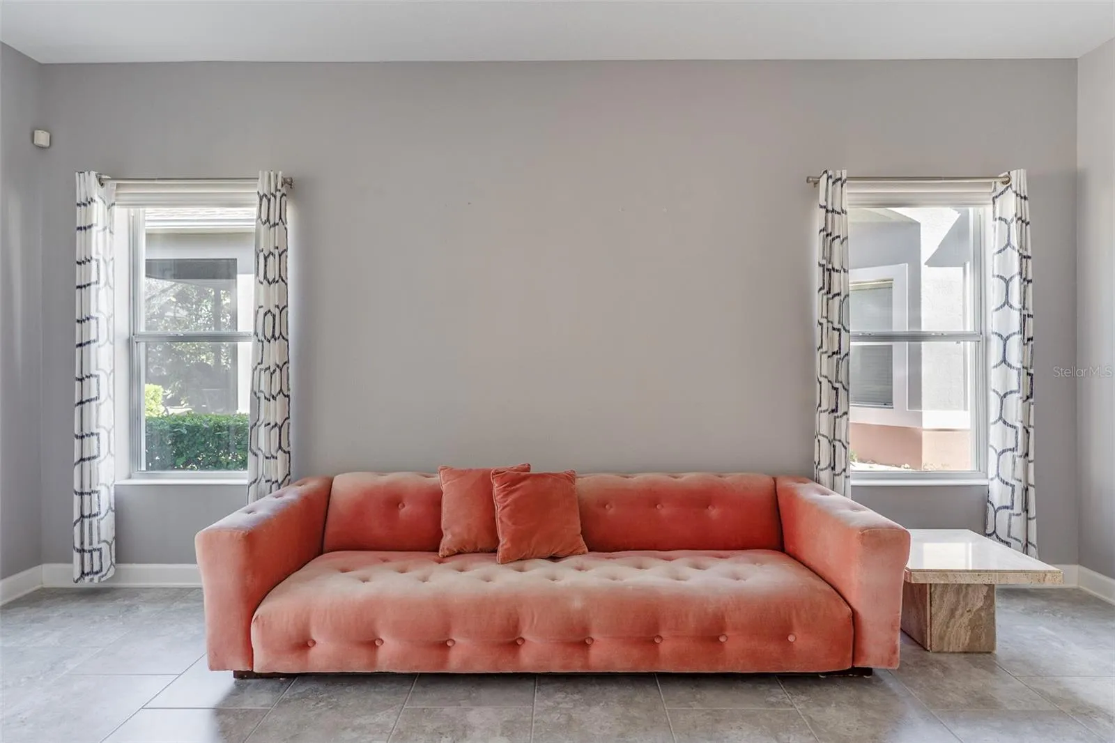 Flexible Living Space, Versatile flex room ideal for a den or office, featuring custom built-in desk and shelving.\r\n