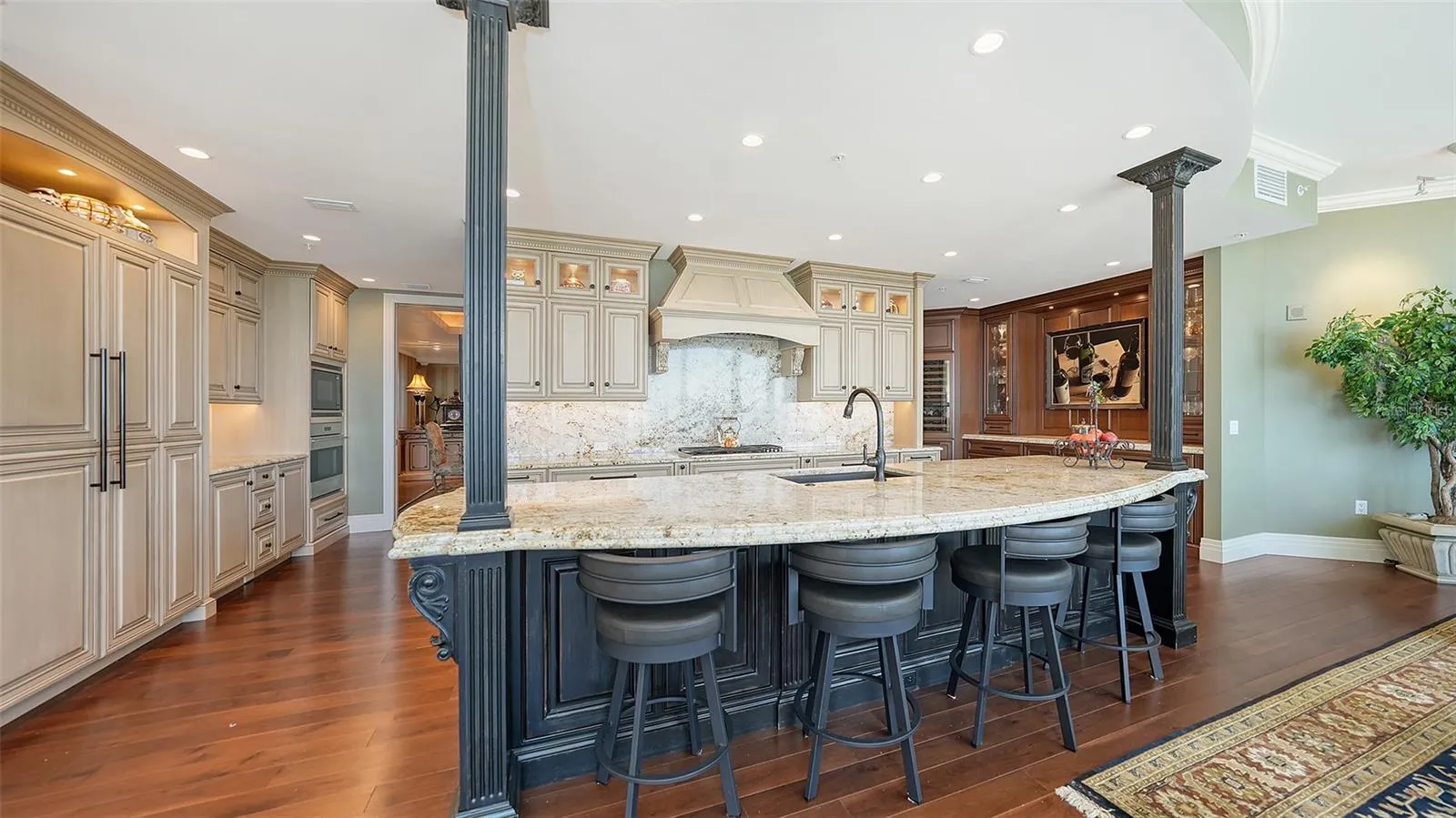 +"PublicRemarks": "MAJOR PRICE REVISION. Marina Towers, Sarasota’s premier bayfront building is in the heart of downtown and offers 365* views of unimpeded bay, marina, gulf, and city views from this 10th floor, 5,800sf residence with an expanded terrace and high ceilings. A private elevator lobby opens into a Grand Salon featuring a gas fireplace and a wall of floor to ceiling windows overlooking the picturesque vistas. The large rooms throughout the residence with endless panoramic viewpoints make this a unique living experience. Delight in a gourmet chef's kitchen highlighted with top-of-the-line appliances including a Wolf gas range, Wolf ovens, Miele dishwasher and a Sub Zero refrigerator and a large pantry closet. A separate catering kitchen is perfect when entertaining larger groups, and spacious dining room and separate intimate dining space are ideal for family gatherings or intimate dinners. The bar area includes a handsome built-in wine cellar. A home theater and the family living areas are well-designed for everyday living. The floor plan lives like a sizable home accommodating 4-bedrooms, 3 en suite plus an oversized den/office with views for everyone. The primary suite has two large walk-in closets and a spacious bathroom. Both the primary and secondary suites overlook Sarasota Bay. Marina Tower offers the epitome of contemporary living in our vibrant bayfront city, boasting full-service amenities including 24-hour concierge and security. This is a pet-friendly, amenity-rich community featuring a chic outdoor heated pool/spa area, fitness center, and a community room with catering kitchen. Additionally, owners have access to a guest suite. This pet friendly community allows two pets with no weight limit. Clever building design allows owners to drive into the gated building, with concierge service available to assist with shopping bags and packages. Added unique features are room-size storage areas plus four secured parking spaces. Sarasota Bay’s famous sunsets and sparkling blue water as far as the eye can see with the heart of Downtown Sarasota, abundant dining, shopping, and entertainment mere steps away."