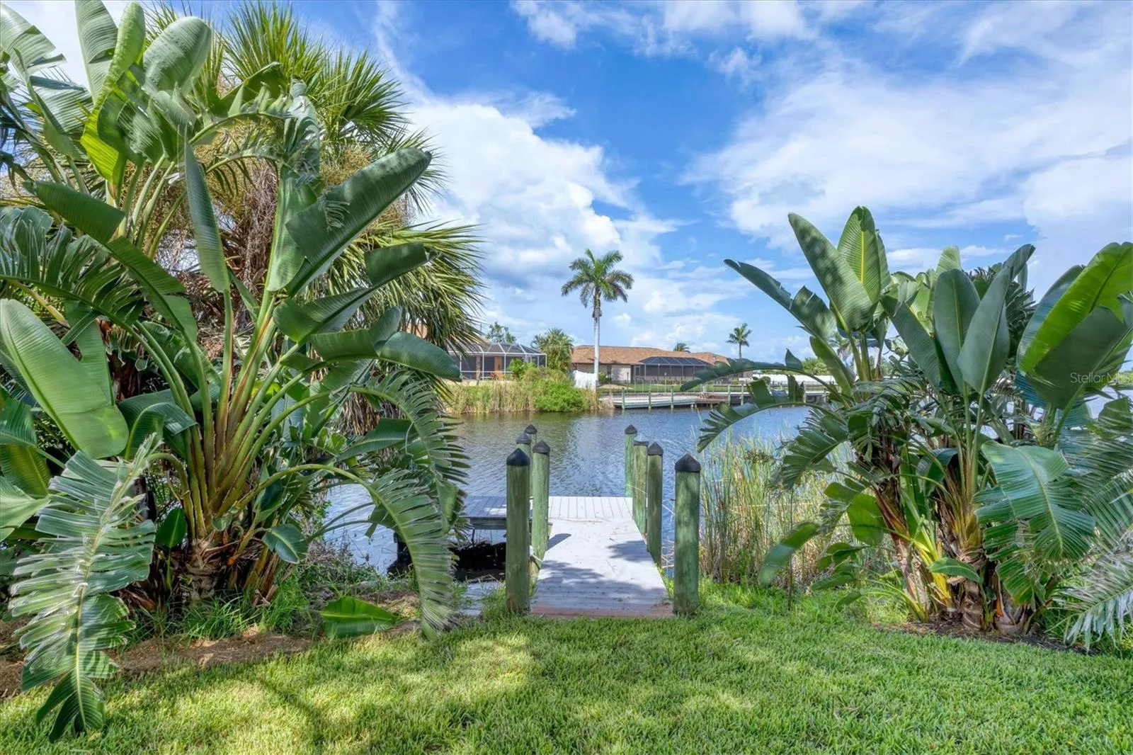 Outdoor Sanctuary & Entertainer’s Dream - • Heated pool and spa (chlorine-based system), complemented by a solar cover and overhead tarps for shade and year-round enjoyment • TREX dock offers low-maintenance, long-lasting waterfront access — just minutes to the Gulf by boat • Fenced southeast section of the property– perfect for pets, gardening, or privacy • Lush landscape designed by a Gardener/Master Naturalist, featuring native and tropical plants all the way to the water’s edge, creating a true backyard oasis \r\n