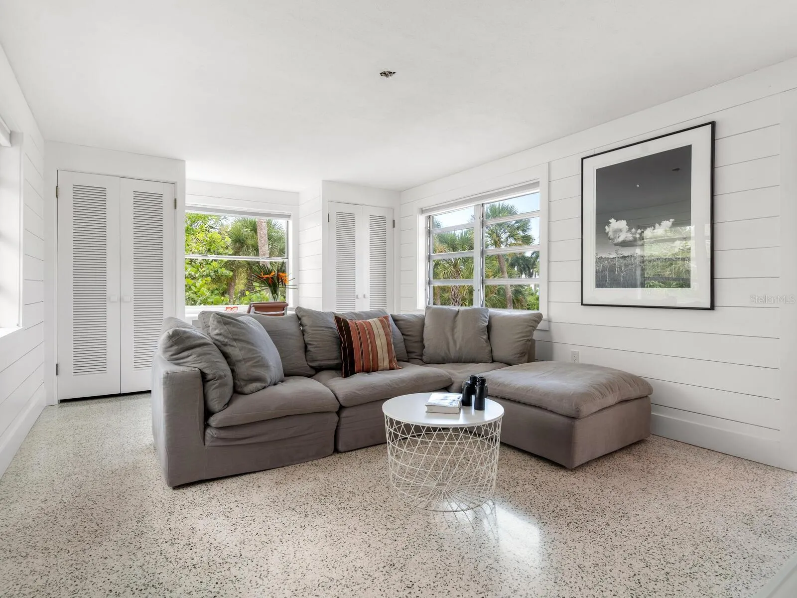 +"PublicRemarks": "Photos 1–3 showcase preliminary renderings of a proposed architectural concept for this exceptional property. Envisioned as a modern coastal retreat, the design celebrates the relaxed luxury of mid-century architecture while maximizing the natural beauty of its surroundings. This residence is a modern coastal retreat set on over an acre and blends luxury with the charm of mid-century design. Enjoy the property just as it is or explore the endless possibilities for building your dream home or compound to take advantage of endless water and sunsets views. This residence greets you with an expansive circular shell stone driveway, offering a grand approach to the home. Upon arrival, you’re welcomed into an open entryway that flows into the main living areas. The living room offers a relaxed setting with terrazzo floors, built-in shelving, a large picture window, and a cozy fireplace framed by shiplap accent walls. Tri-fold glass doors open to a bright Florida room, also with terrazzo floors, creating seamless indoor-outdoor living. A distinctive concrete wall separates the space from the dining area with built-in bar seating. The kitchen features custom soft-close cabinetry, quartzite countertops, and Bosch appliances—including a gas cooktop, oven, refrigerator, and dishwasher—framed by large windows with peaceful lagoon views. Outside, enjoy a shell-crete pool deck with ample room for lounging and dining. A heated pool, shuffleboard court, and firepit seating area complete the inviting outdoor space. Upstairs, a flexible bonus room includes built-in closets, water-view windows, and a full bath with a tub/shower, vanity, and stylish tile. Step out to the rooftop deck with panoramic views of the pool, grounds, and Heron Lagoon. The primary suite offers high beamed ceilings, shell-crete floors, sliding glass doors to a private lagoon-view deck, and an en-suite bath with a floating dual-sink vanity, glass walk-in shower, private water closet, and linen closet. A custom walk-in closet with built-ins and soft-close drawers completes the suite. Two guest bedrooms, a full guest bath, a butler’s pantry, spacious laundry room, and half bath round out the main level. Despite being impacted by the 2024 hurricanes, the house and property have recovered quickly. The Sanderling Club has released renderings that envision a new era for its historic clubhouse and private waterfront setting. The Miami-based architectural firm STRANG has designed a new residence for the expansive site. The elevated design highlights the opportunity for tremendous Gulf views. The property’s unique setting amidst Heron Lagoon and the Gulf of Mexico allows for stunning vistas of sunrises and sunsets. This property is one of the largest lots on Heron Lagoon in Sanderling – prime for redevelopment as it would offer amazing views and is large enough to accommodate a significant home/compound. The property is located minutes from Siesta Key’s crystal quartz sand beaches and Siesta Village for shopping and restaurants. Culturally rich downtown Sarasota restaurants, theater, ballet, opera, museums, galleries, and shopping are a short drive away."