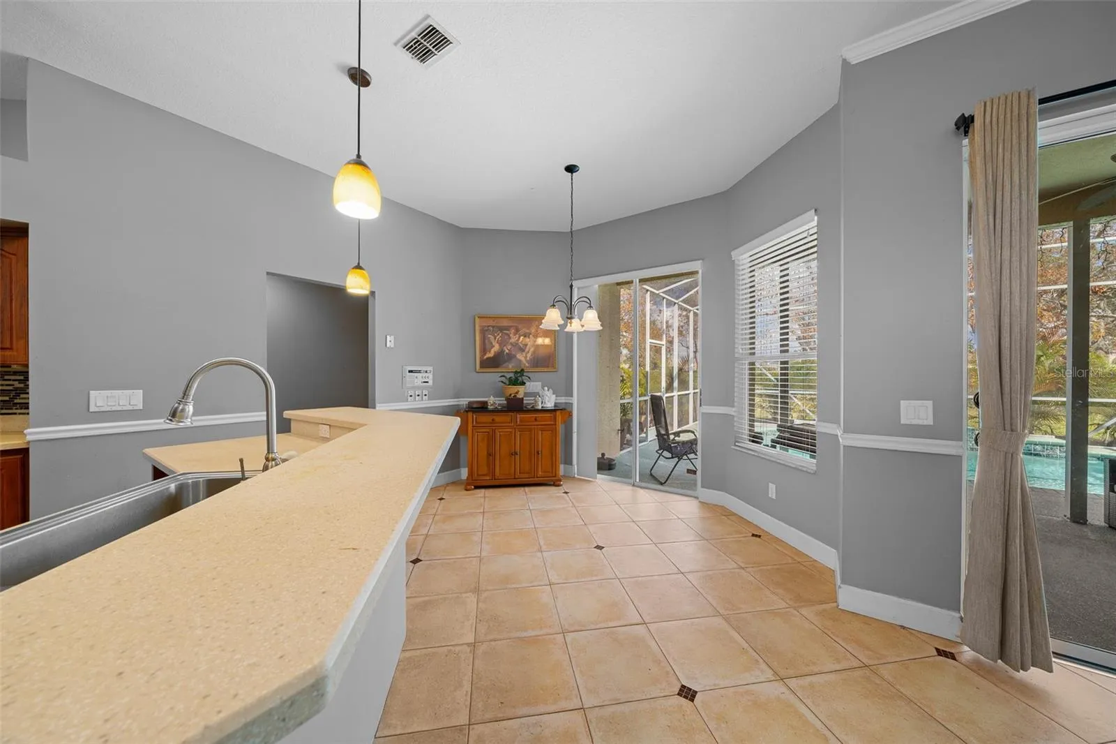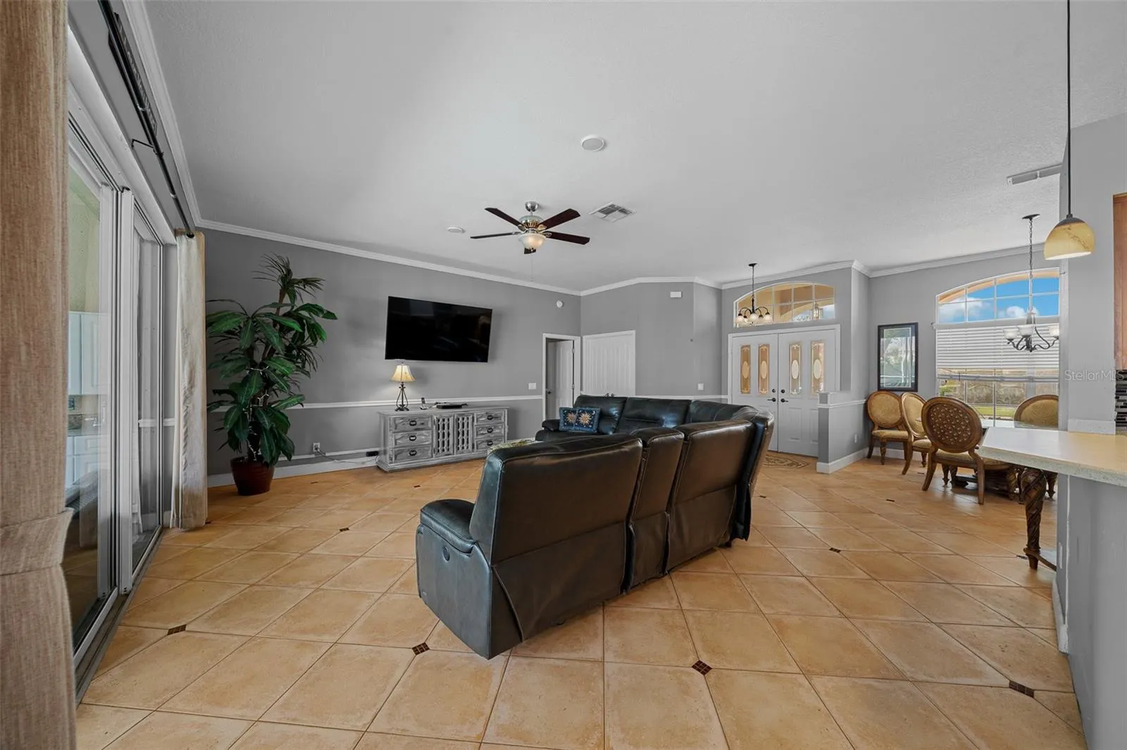 From the moment you walk through the DOUBLE-DOOR ENTRY, you’ll be wowed by the bright, open GREAT ROOM with soaring ceilings, gorgeous ITALIAN TILE FLOORS, and big TRIPLE SLIDERS that open to your private pool and lanai. Talk about a room with a view!\r\n