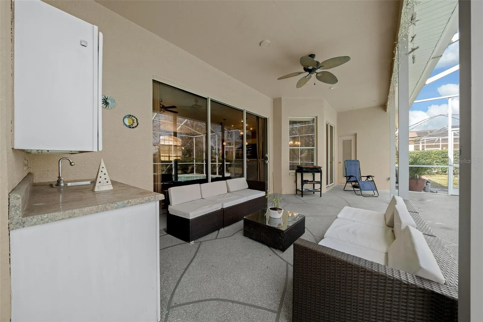 Love to cook or entertain? The kitchen is ready for you with a BREAKFAST BAR, a BUILT-IN CUTTING BOARD, NEWER APPLIANCES (2023), and even a WINE FRIDGE. Step outside and find your own slice of paradise—a SCREEN-ENCLOSED POOL with lots of space to lounge and a COVERED LANAI WITH A KITCHENETTE for easy outdoor meals.\r\n