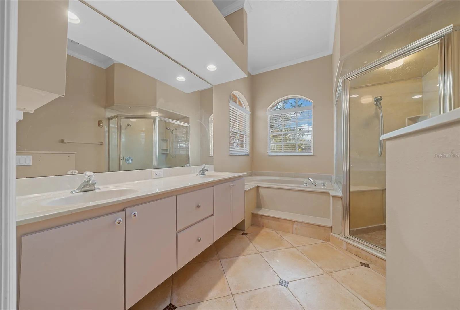 Your PRIMARY SUITE is like stepping into your own Italian villa, with pretty stucco details that look like old-world brick, arched doorways, and tons of space to spread out. You’ll love the huge WALK-IN CLOSET, DOUBLE SINKS, MAKEUP VANITY, GARDEN TUB, and WALK-IN SHOWER—perfect for relaxing after a long day. Need a quiet spot to work? There’s a HOME OFFICE right off the primary bedroom, making work-from-home life a breeze.\r\n