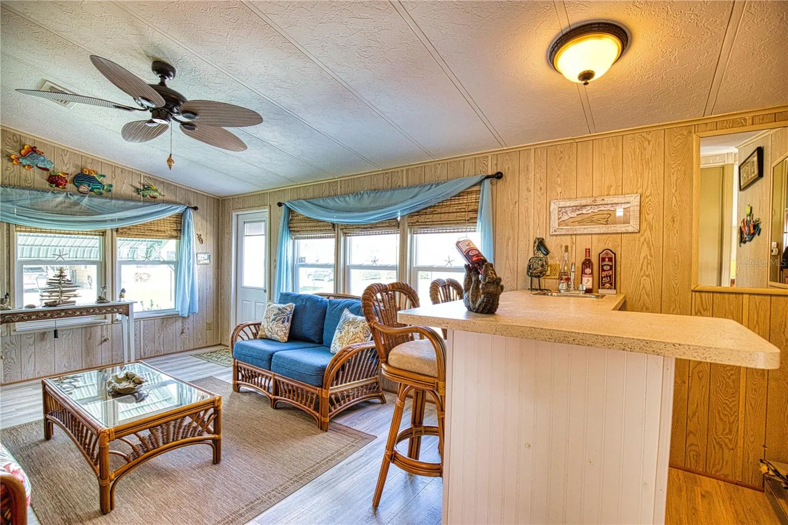 +"PublicRemarks": "The ultimate lifestyle on Florida's Gulf Coast, located between Sarasota and Fort Myers with boat access to the Gulf. La Casa is a quiet 55+ community of 974 homes nestled among a variety of native trees. Spacious common grounds surround our eight lakes. Welcome To the Good Life! RECREATION, 2 Clubhouses, 2 Heated Pools. There is no shortage of activities in this community! 2 Bedroom, 2 Bath. Open floor plan w/spacious kitchen, living and dining room areas. Kitchen w/built-in cabinets at entry, appliances. Dining room w/built-in hutch. Front entry to family room w/wet bar, front awning and lake views. Hall linen closet. Guest bedroom w/laminate floor, brightened by corner windows features a large walk-in closet. Guest bath w/wainscotting, new vanity, walk-in tiles shower. Primary bedroom w/laminate floor, walk-in closet. Primary bath w/wainscotting, new vanity, new walk-in tiles shower and safety bars. Luxury waterproof vinyl. New windows 2017. A/C 2018, humidistat, ceiling fans. Ducts replaced 2019.\u{A0} Home sided in 2018. The home features vaulted ceilings throughout and a split floor plan offering privacy for you and your guests. Driveway to a tiled patio area. Utility room w/tiled floor, washer, dryer. New Carport installed!"