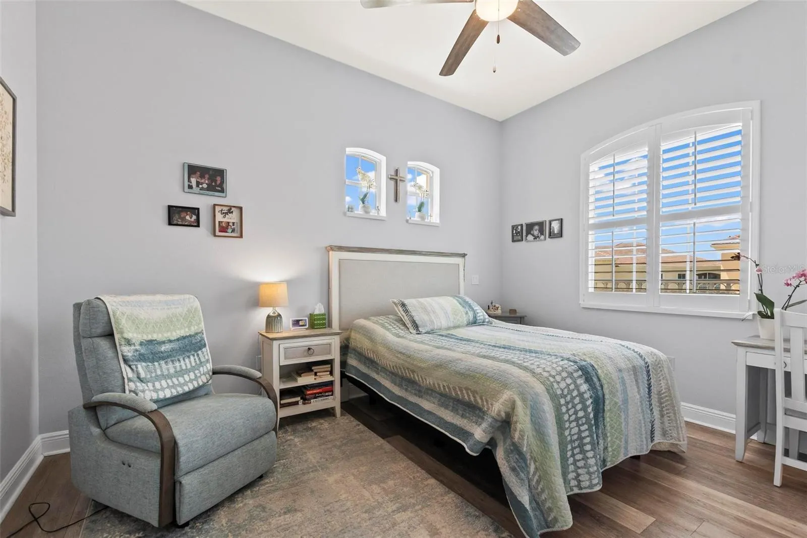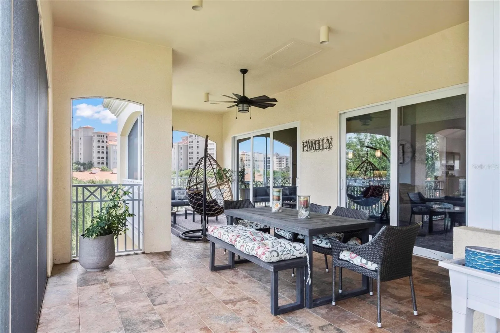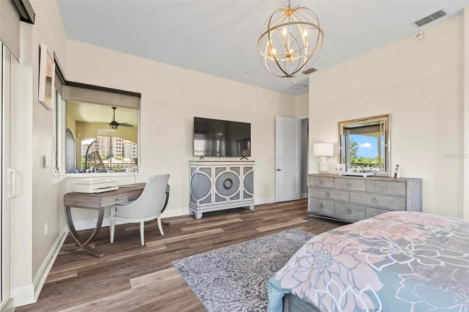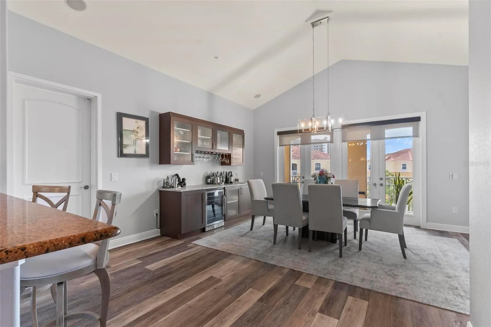 Luxury renovations include remote control shades in living, dining and primary bedroom. All new lighting and fans throughout. All new "finger print resistant" stainless smart appliances. Custom cabinetry in dining area, granite bar top, complete with wine chiller. LVT flooring in living areas, custom tile and cabinetry in bathrooms, large soaking tub in primary bath. Slate flooring in both front and back covered porches. Whole house water filtration system, New water heater. New quartzite poly flooring in your private two car garage.\r\n