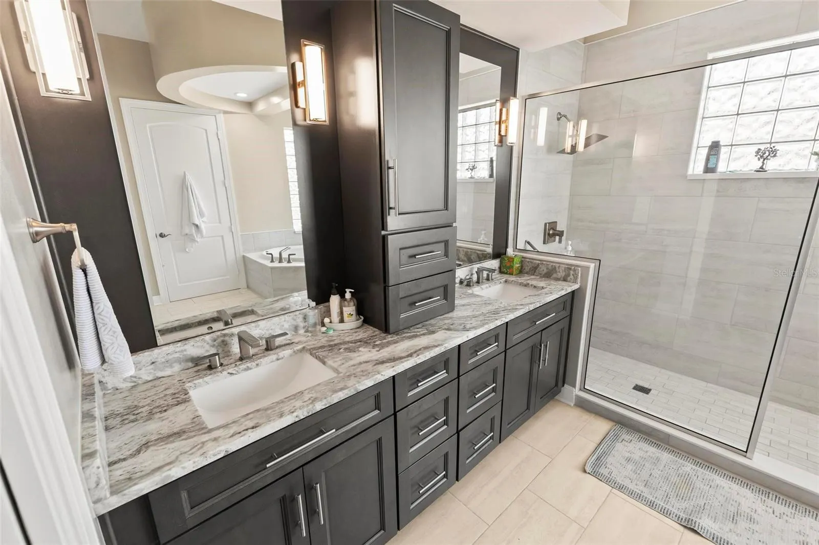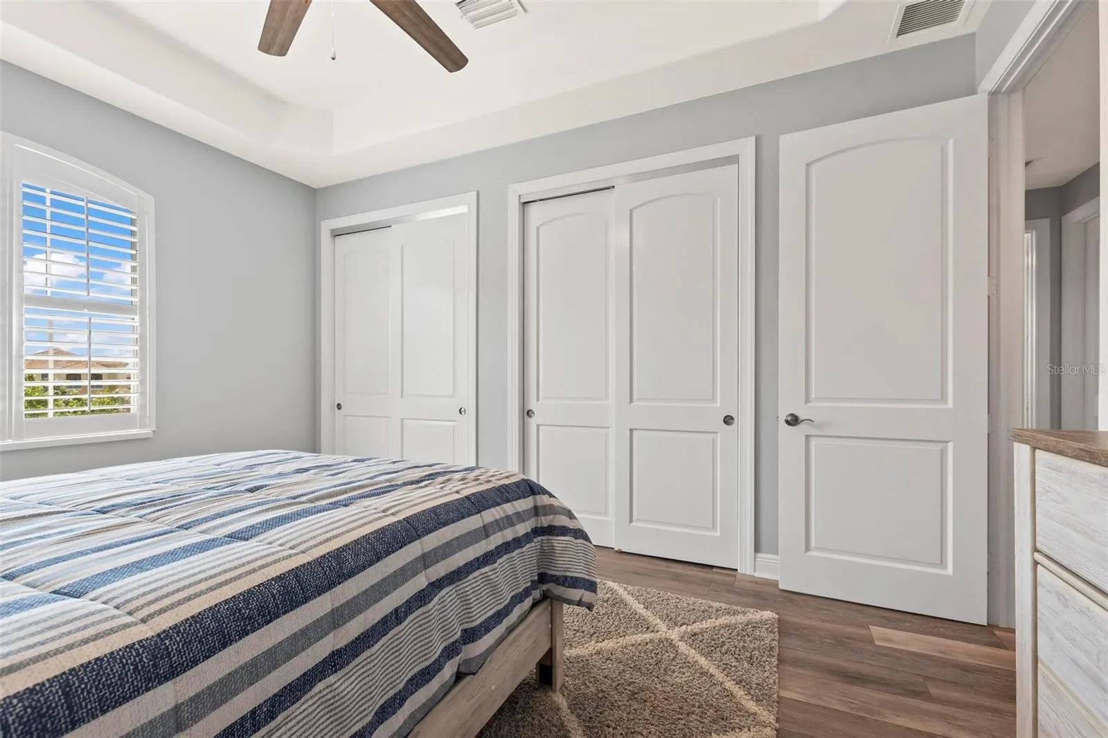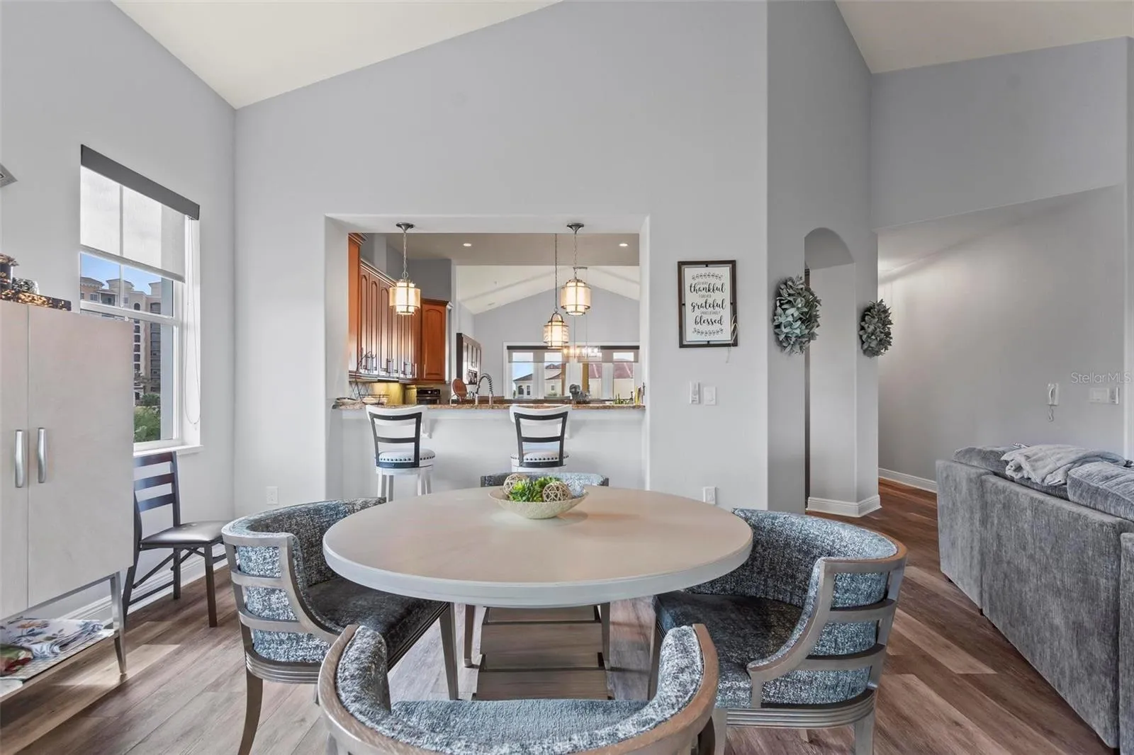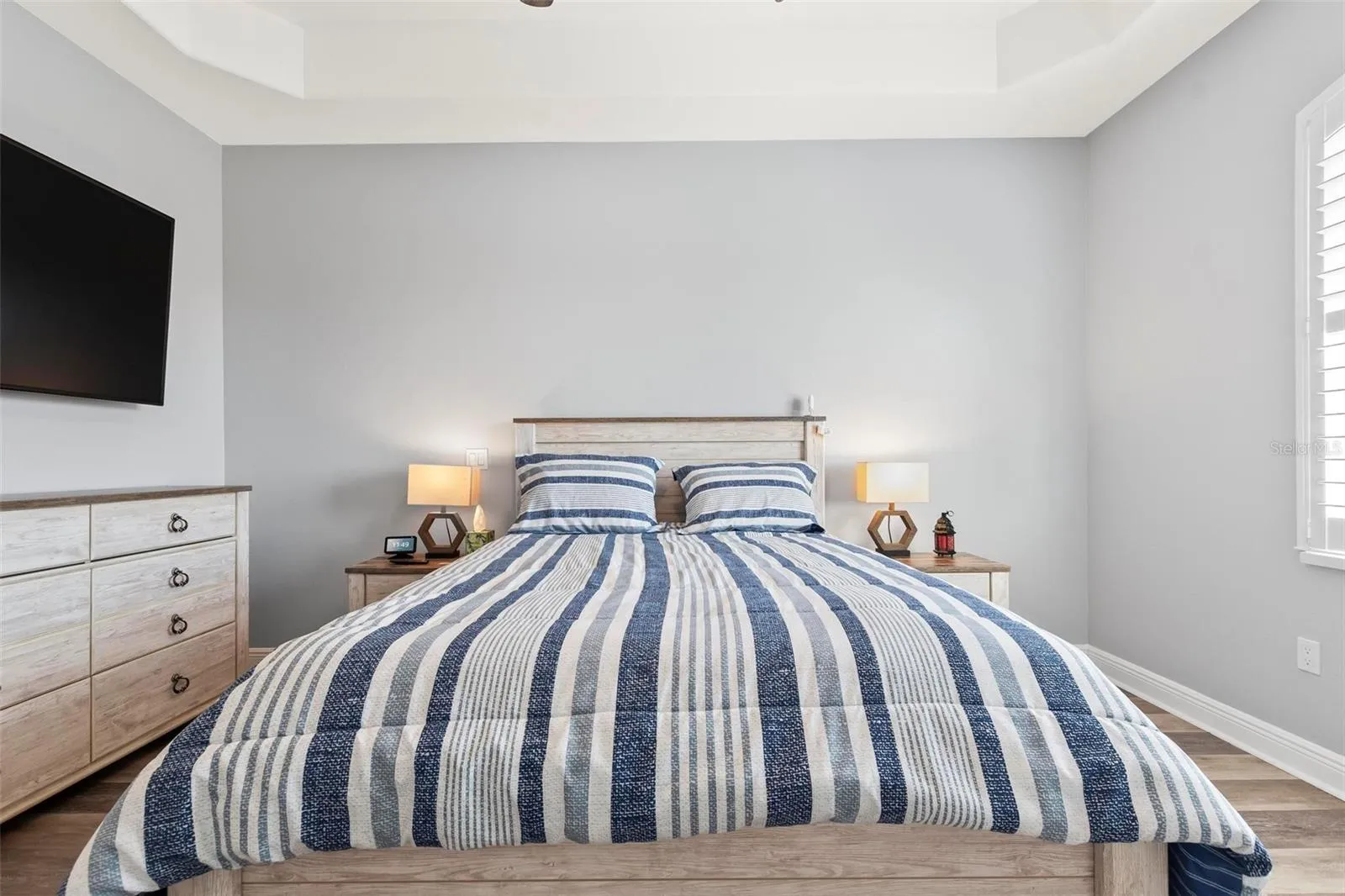 Luxury renovations include remote control shades in living, dining and primary bedroom. All new lighting and fans throughout. All new "finger print resistant" stainless smart appliances. Custom cabinetry in dining area, granite bar top, complete with wine chiller. LVT flooring in living areas, custom tile and cabinetry in bathrooms, large soaking tub in primary bath. Slate flooring in both front and back covered porches. Whole house water filtration system, New water heater. New quartzite poly flooring in your private two car garage.\r\n