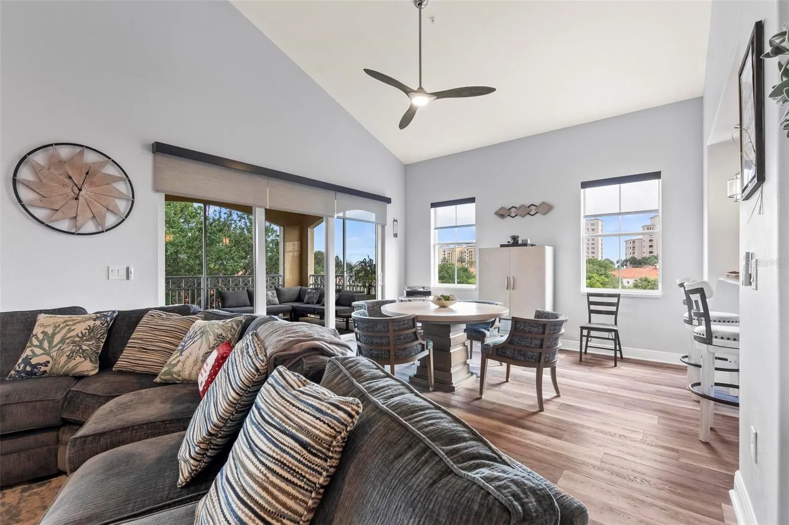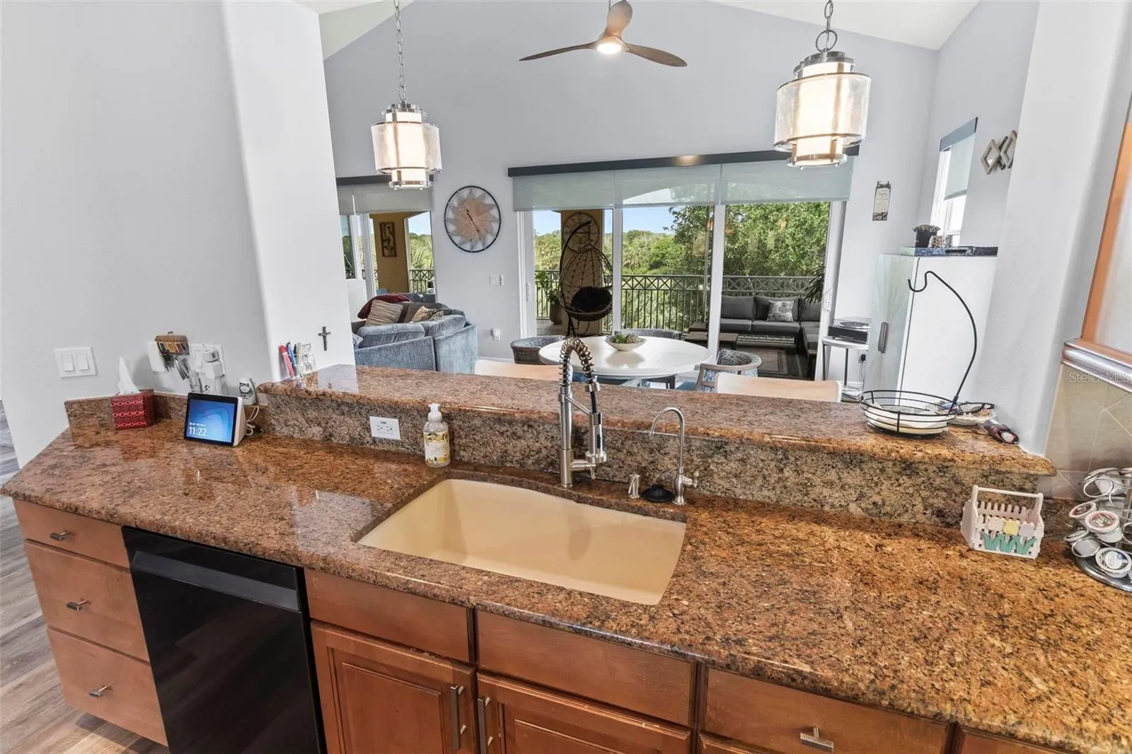 Step inside and be greeted by a spacious open, flowing floor plan, accentuated by vaulted ceilings that create a sense of grandeur. The living areas boasts panoramic views of the serene lake, lush golf course and filtered views of the ocean, providing a picturesque backdrop for everyday living.\r\n