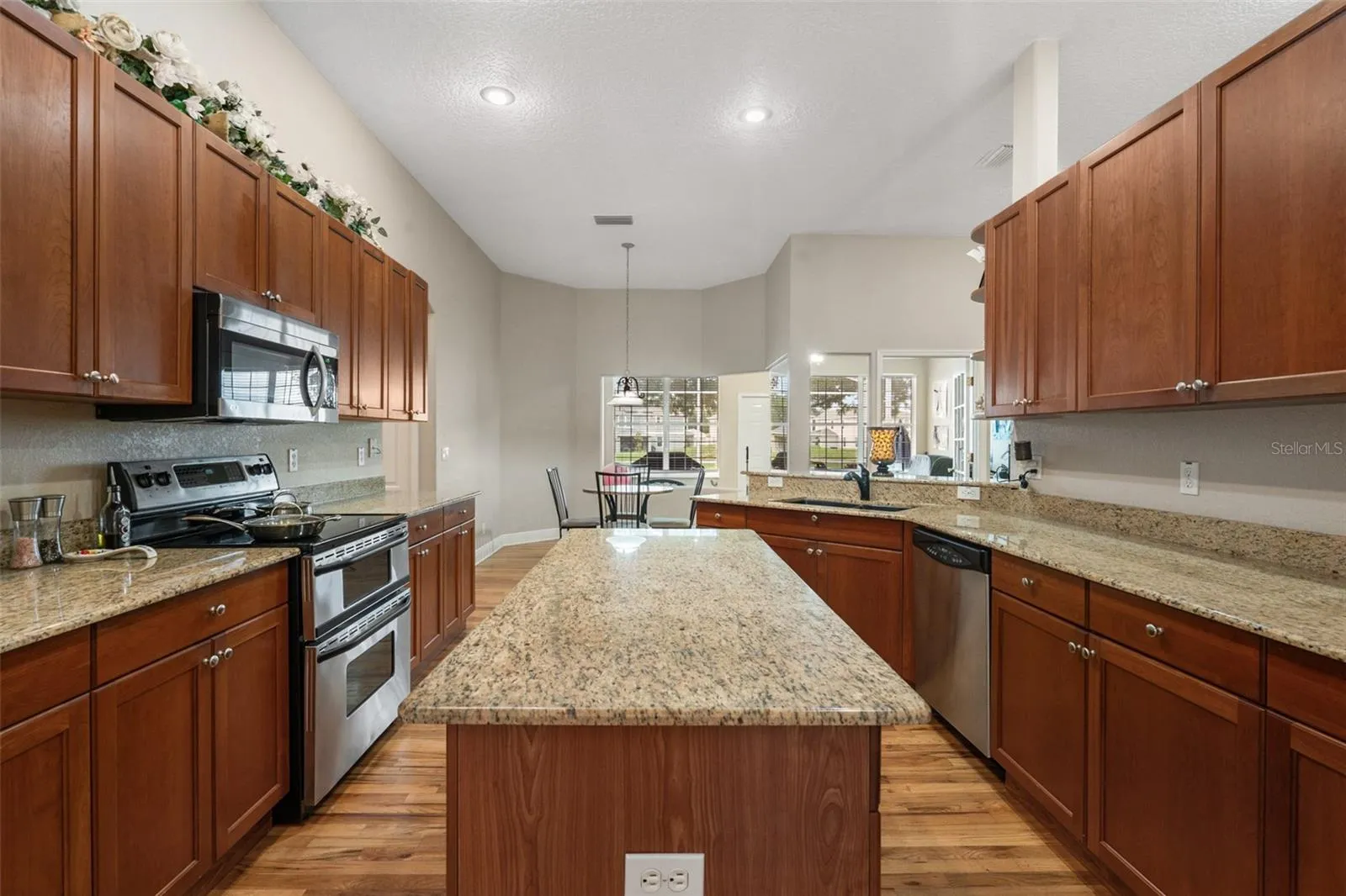 +"PublicRemarks": "Welcome to your dream home in the highly desirable Palisades Community! *Brand New Roof Being Installed* This beautifully designed residence offers 4 spacious bedrooms, 3 bathrooms, and 2,674 square feet of refined living space. As you step inside, you'll be greeted by elegant wood flooring that flows seamlessly throughout the main areas. To the left you'll find a formal dining room, perfect for hosting gatherings and special occasions. To the right, a versatile living or office space provides flexible options to suit your lifestyle. Moving forward, the heart of the home awaits: a gourmet kitchen with ample storage, stunning granite countertops, and breakfast nook designed for both everyday meals and entertaining. The spacious living room is ideal for relaxing and enjoying quality time. On one side of the home, you'll find three well-appointed bedrooms. Two featuring a full bathroom nearby, while another includes a private ensuite bathroom, ensuring comfort and convenience for family or guests. The other side of the home is dedicated to the impressive master suite. This spacious retreat includes a large walk-in closet and a luxurious bathroom with a doorless shower, a soaking tub, and dual vanities, offering a spa-like experience in the comfort of your own home. At the back of the house, discover a large bonus area that's perfect for gaming, a playroom, or any activity that suits your needs. Step outside to the back screened-in lanai, where you can relax and take in breathtaking views of the golf course. This serene outdoor space is ideal for entertaining or simply unwinding while enjoying the beauty of your surroundings. Enjoy exclusive access to the community's outstanding amenities, including a clubhouse, refreshing community pool, and tennis/pickleball courts. For water enthusiasts, the private boat launch and lake access on Lake Minneola are just a short distance away. Located close to shopping, schools, dining, and more, this home offers the perfect blend of luxury, convenience, and community. Don't miss the opportunity to experience the best of both luxury and leisure in this exceptional Palisades home. Schedule our showing today !"