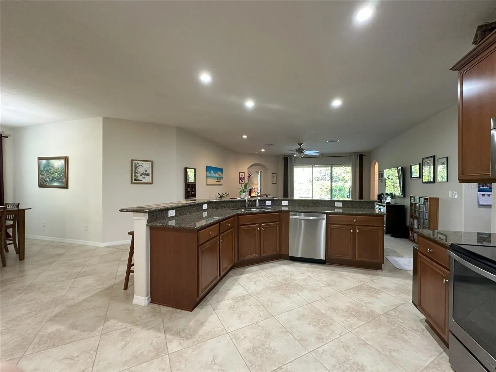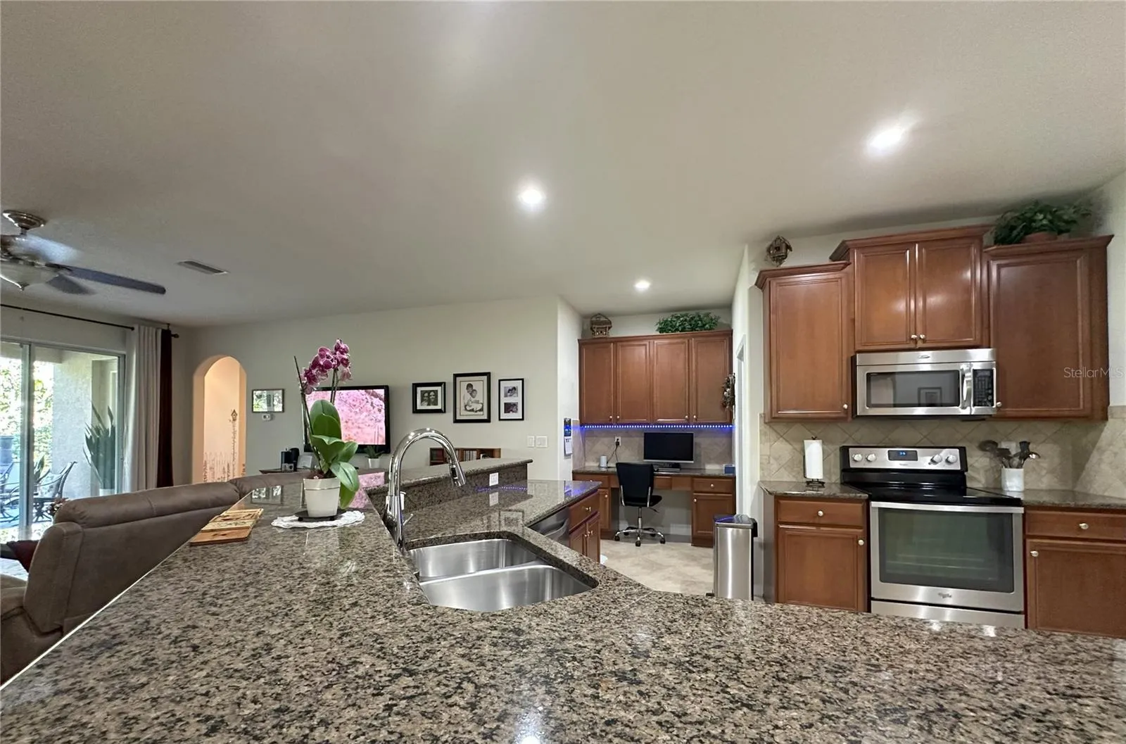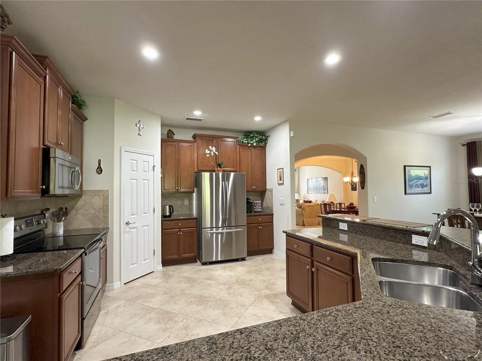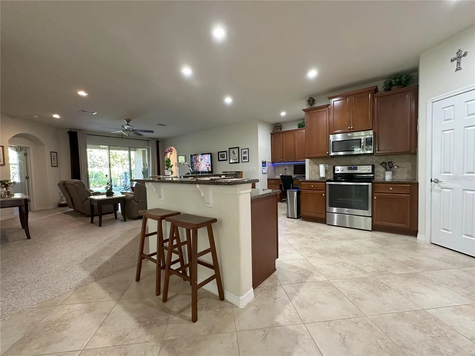 +"PublicRemarks": "This beautiful and well-maintained home, located in the highly desirable Waterbridge subdivision of Stonebrier community, features 4 bedrooms, 3 full baths, and a tandem 3-car garage. The expansive diagonal tiled foyer welcomes you and your guests into the separate formal living and dining rooms with arches and provides warmth and an inviting atmosphere. The huge kitchen features a large granite countertop island, tiled backsplash, 42-in multi-tiered wood cabinets, all stainless-steel appliances, touch faucet, walk-in pantry, directional LED flood lights, smart light switches, built-in desk area, and separate breakfast nook area for casual dining. This central and open-concept kitchen flows into the great room/family room which is wonderful for family gathering or entertainment during the holidays. The owner's suite offers an en-suite large bathroom with frameless shower enclosure, dual high sinks, make-up area, soaking bathtub and custom designed shelving in the walk-in closet. The 3-way split plan provides privacy for all family members. The 2nd bedroom located in the front area of the home comes with custom closet shelves, has its private bathroom with granite countertop and decorative listello tiled shower. The 3rd and 4th bedrooms in the back area of the home share a bathroom with the same features. Both the side door from the owner's suite and sliding glass doors from the great room lead to a travertine covered patio and also open to a green oasis backyard with mature fruit trees and surrounding privacy shrubs. You can unwind and relax in this home's outdoor space or immerse in the community's resort style zero-depth entry pool with a splash area, waterslide, poolside cabanas and lounge chairs The Stonebrier community also features a fitness center, basketball court, soccer and cricket fields, playgrounds, and many nature preserved areas in addition to being zoned for highly-rated and desirable schools (McKitrick Elementary, Martinez Middle, and Steinbrenner High). Come along to enjoy the relax lifestyle that you have been looking for!"