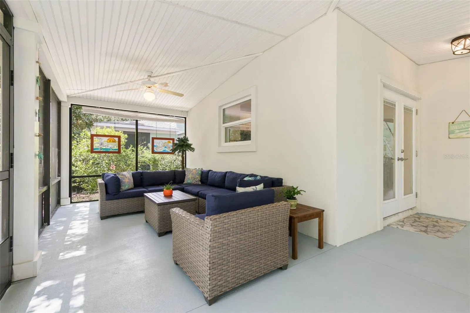 Welcome to Beach Haven’s Happy house! Good vibes and sunny days welcome you home to your very own beach life. Stunning Key West style and custom built design- there is no other home like this one in Beach Haven! The owner’s were thoughtful in their execution so you will enjoy peace of mind with stem wall elevation -concrete block construction on the first level and Hardie-board cement siding on the second level with Icynene foam insulation as well as Impact windows throughout.( only kitchen french doors are not impact- Balcony and front doors are.) New washer and dryer & refrigerator added in August 2024. Upon entry to this cozy retreat you are wowed with cathedral ceilings to upstairs landing which houses the Owner’s retreat with its private balcony overlooking the most beautiful natural setting. This private perch is perfect for sipping coffee or reading a book amongst the birds. Downstairs encapsulates the heart of the home with open concept living for easy entertaining and five speaker surround sound and Luxury Vinyl Plank flooring throughout the home. The cook in the family will enjoy prepping meals and hosting guests easily as the french doors open to a large screened in porch. Take full advantage of the Florida lifestyle as your indoor space flows outdoors with this exceptional floor plan. Dine al fresco and relax in the outdoor living room- you are surrounded by nature in your private back yard which is a true garden oasis. Vibrant citrus trees and flora and fauna can be enjoyed with sweet little garden paths and sitting areas to enjoy the cool of the day. Every house by the sea deserves an oversized garage and this one has a nice work shop area or additional storage area in the back as well as attic access storage. Just down Sandy Beach Way is the community deeded beach access for your favorite beach days. Be sure and and wind down with a cool dip in Beach Haven’s community pool overlooking the lake and footbridge. Beach life is calling and we’ve got your keys to the beach! Buyer to verify measurements.