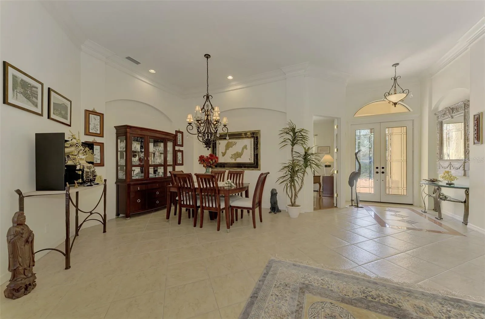 Elegant Design and Premium Features are noticed immediately when you step through decorative double glass doors into a stunning foyer with inlaid tile and marble, leading to formal living and dining rooms that seamlessly open to a spacious kitchen and great room. The state-of-the-art kitchen showcases cherry cabinets, granite countertops, a gas range, and top-tier appliances. High-end details like tray ceilings, triple crown moldings, and custom lighting fixtures add sophistication, while 8-foot doors enhance the home’s grandeur.\r\n