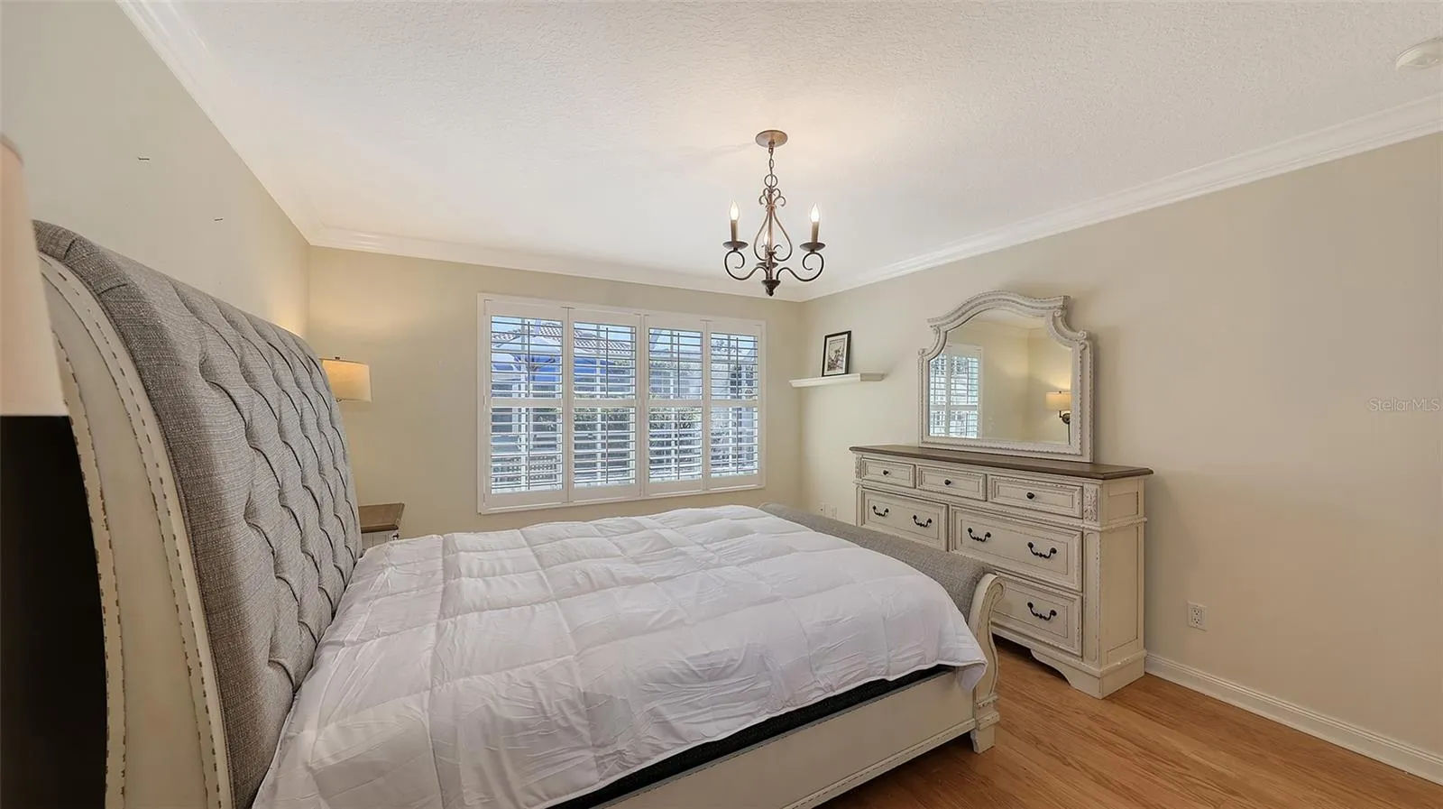 Your primary suite is a haven of tranquility with crown molding, plantation shutters, and a spacious custom walk-in closet. The perfectly updated bathroom features granite counters and updated shower doors to elevate your daily routine. Your guests will enjoy their own updated and well-appointed bedroom with their very own custom walk-in-closet, as well as their own tastefully updated bathroom. For storm protection, the home includes clear hurricane shutters for the main living area as well as the glass front door.\r\n