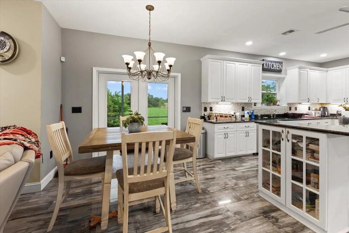 The chef’s kitchen boasts granite countertops, custom wood cabinetry, glass tile backsplash, a split-top island, expansive breakfast bar, built-in buffet, walk-in pantry, including double ovens and cooktop.\r\n