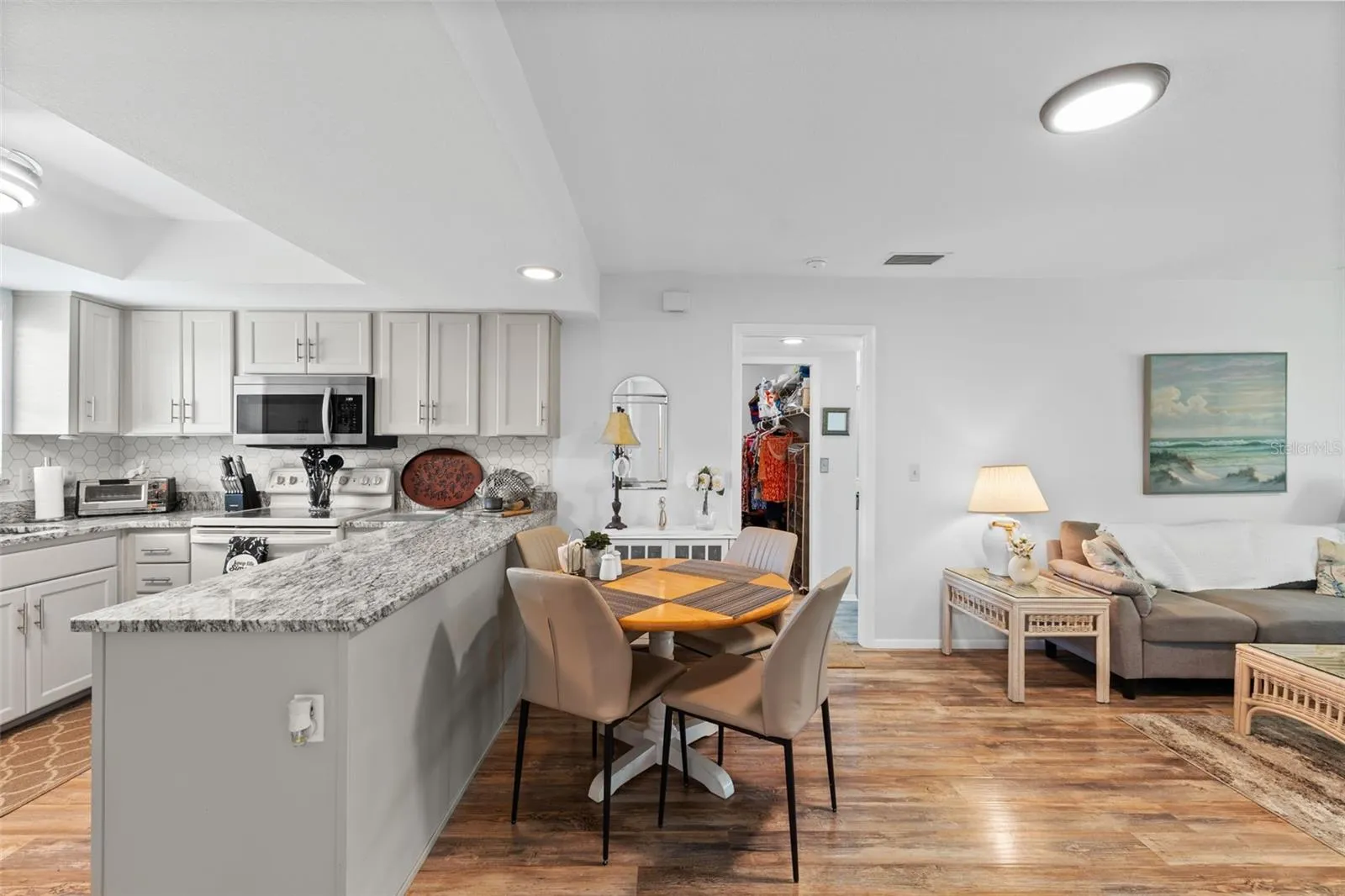 The contemporary neutral color scheme of family living space flows seamlessly to the newly remodeled kitchen with quartz countertops and tile backsplash, luxury vinyl flooring, a full pantry and plenty of cabinet space. Preparing meals for family and friends here will truly be a pleasure. The spacious bedrooms will accommodate a queen or king sized bed plus each bedroom opens through sliding glass doors to the 32 foot lanai offering beautiful tropical garden views. 2025 updates include a new air conditioning/heating system, new hot water heater and new stackable washer and dryer unit.\r\n