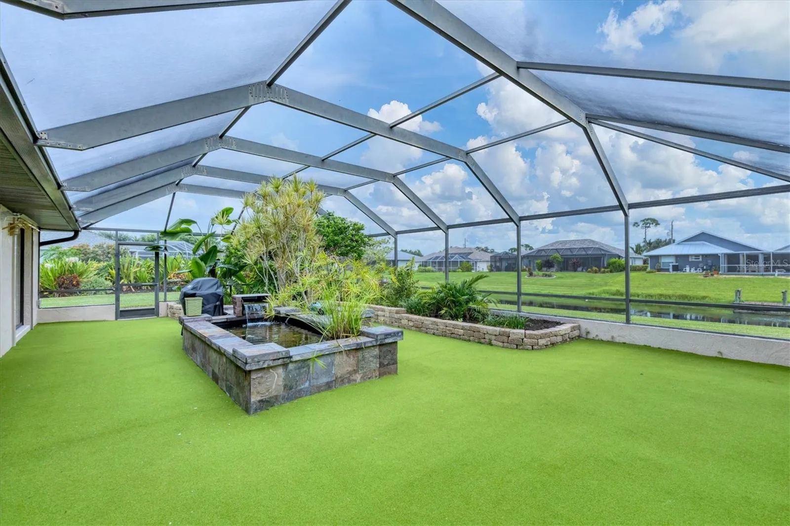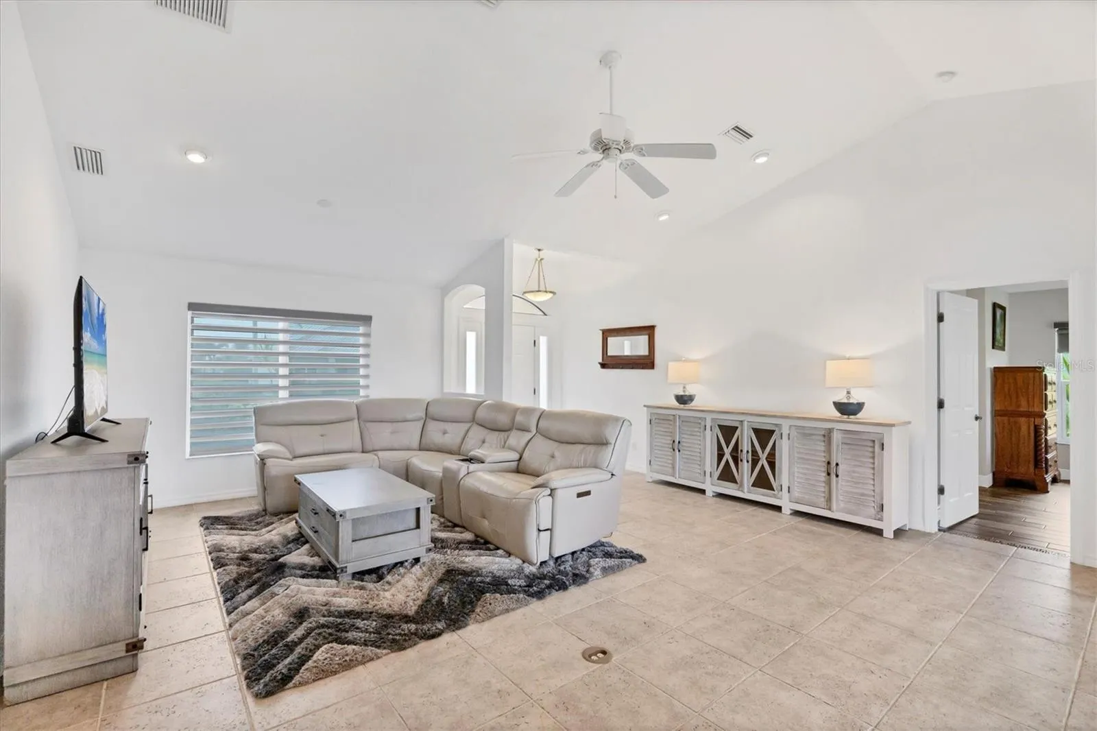 +"PublicRemarks": "This stunning 3-bedroom, 2-bathroom, 3-car garage home offers the perfect blend of tropical serenity and modern upgrades, nestled on a lush .46-acre lot in an X flood zone—meaning no flood insurance is required. With soaring ceilings and a spacious kitchen featuring a large breakfast bar, the interior feels open and inviting, while the three-car garage provides ample space for vehicles and storage. The spacious ensuite primary suite boasts two walk-in closets and a luxurious retreat feel, while two guest bedrooms are thoughtfully positioned on the opposite side of the home for added privacy. Step out back into a large, screened lanai overlooking vibrant landscaping and a raised pond filled with fish and lily pads, all set against the peaceful backdrop of a freshwater canal. The beautifully landscaped double lot offers the homeowner extra space and privacy. Recent updates include impact windows and doors plus StormSmart screens installed in 2024, full replumbing in 2023, and a new AC, roof, and water heater in 2019. Located close to golf courses and the Gulf, this home is offered with the current furniture and furnishings if desired—making it a nearly turnkey tropical retreat ready for you to enjoy."