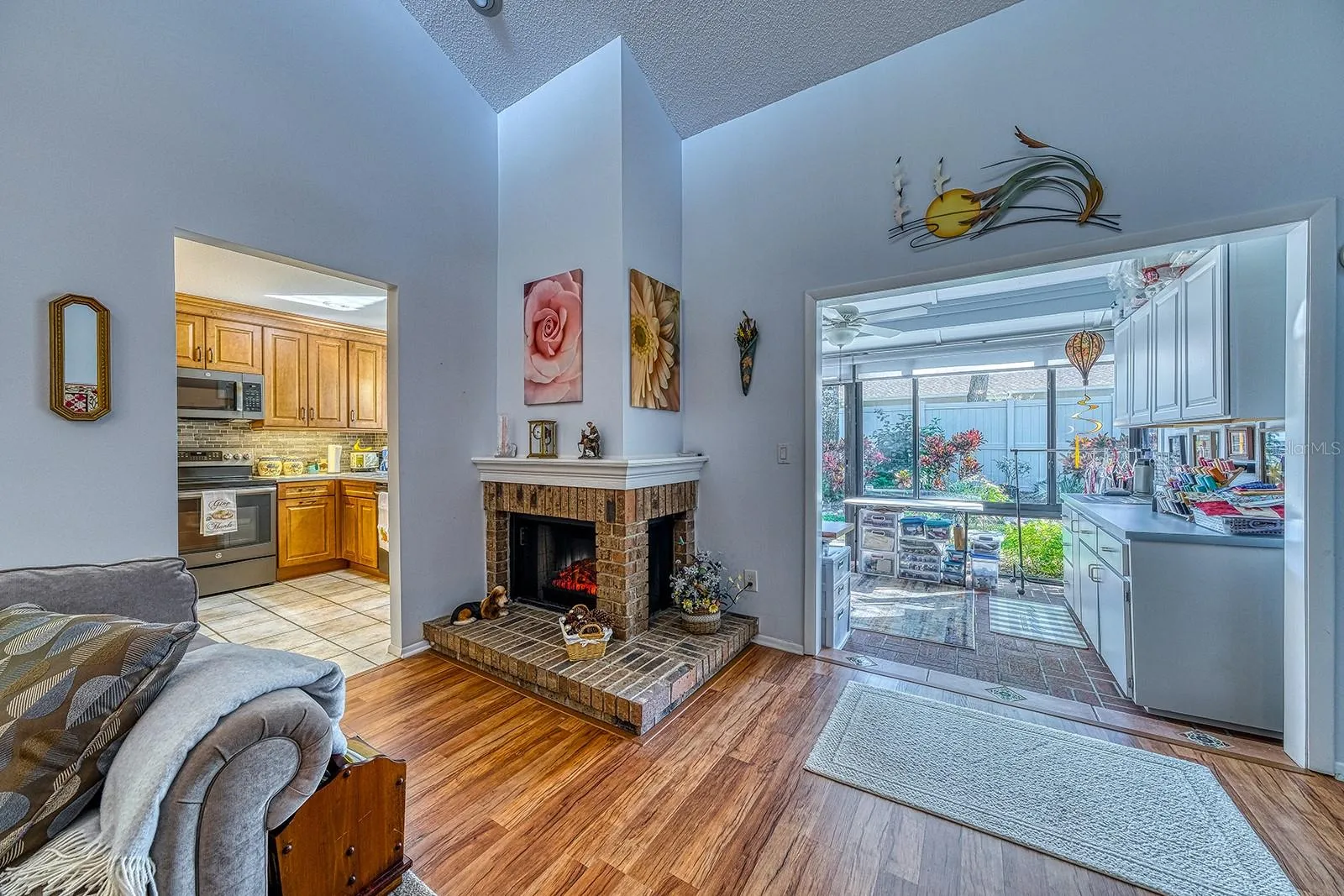 +"PublicRemarks": "CONDO WITH PRIVATE GARAGE - Discover the perfect blend of comfort, elegance, and convenience in this beautifully updated 2-bedroom, 2-bath condominium in the highly sought-after Sierra Condominiums of Maitland. This move-in ready condo welcomes you with a screened front porch and an inviting living room with a wood-burning fireplace with an electric insert. The bonus room can be used as a television room, as a Florida room (offering a sunny spot to enjoy morning coffee while watching butterflies in the garden), or as a hobby room; leaving the living room free for formal entertaining. The upgraded kitchen features quartz countertops, under-cabinet lighting, new appliances, and accessible cupboards for easy access. A versatile breakfast nook (which is currently used as an office), includes a beautiful built-in cabinet perfect for dishes, collectibles or files. Tile floors in the kitchen and baths complement attractive laminate flooring throughout the living areas. Double-pane windows with plantation shutters, a new front door, gas heat, and a gas water heater provide comfort and efficiency year-round. Surrounded by mature trees and lush landscaping, this friendly, walkable neighborhood (with no traffic going through it), offers a warm community feel. Sierra residents enjoy a sparkling pool, tennis/pickleball court, and a welcoming clubhouse. HOA fees cover exterior maintenance, reserves for roofs, painting, roadway and pool upkeep, lawn care and cable television. A wonderful opportunity for those looking to downsize while maintaining an independent lifestyle – or an ideal first home with a coveted Maitland location!"