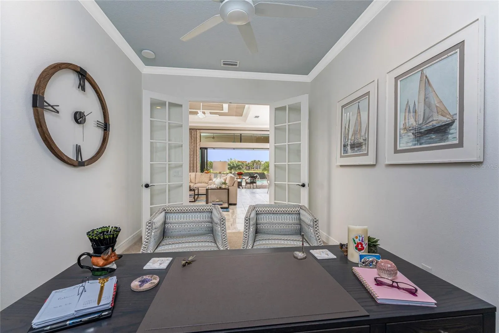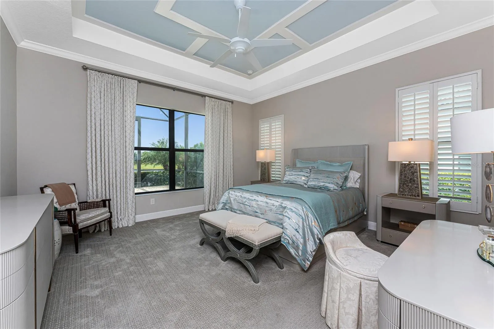 +"PublicRemarks": "Experience unmatched luxury in this stunning custom-built Neal Signature pool home, perfectly positioned to capture breathtaking water views from nearly every angle. This elegant 3-bedroom, 3.5-bath residence features en suite bathrooms for every bedroom, a private in-law suite with separate entry, soaring 12-foot tray ceilings in the main living area, a custom built-in bookcase, 10-foot ceilings throughout, and a gourmet kitchen with built-in ovens, crown molding, and upgraded solid-core doors. The owner’s suite offers dual walk-in closets and a spa-inspired bath with an expansive walk-in shower, while a dedicated office provides the ideal workspace. The expansive lanai is an entertainer’s dream with an outdoor kitchen, panoramic screen enclosure, and a sparkling pool and spa overlooking the tranquil lake, where every sunset feels like a private show. Built with hurricane-impact windows and superior craftsmanship, this home blends strength, efficiency, and elegance, located in Aria—a gated Neal Signature luxury community offering a clubhouse, resort-style pool, pickleball courts, and a state-of-the-art fitness center. This immaculate home combines sophistication, comfort, and the serenity of a beautiful water view—a truly exceptional opportunity to make it yours."