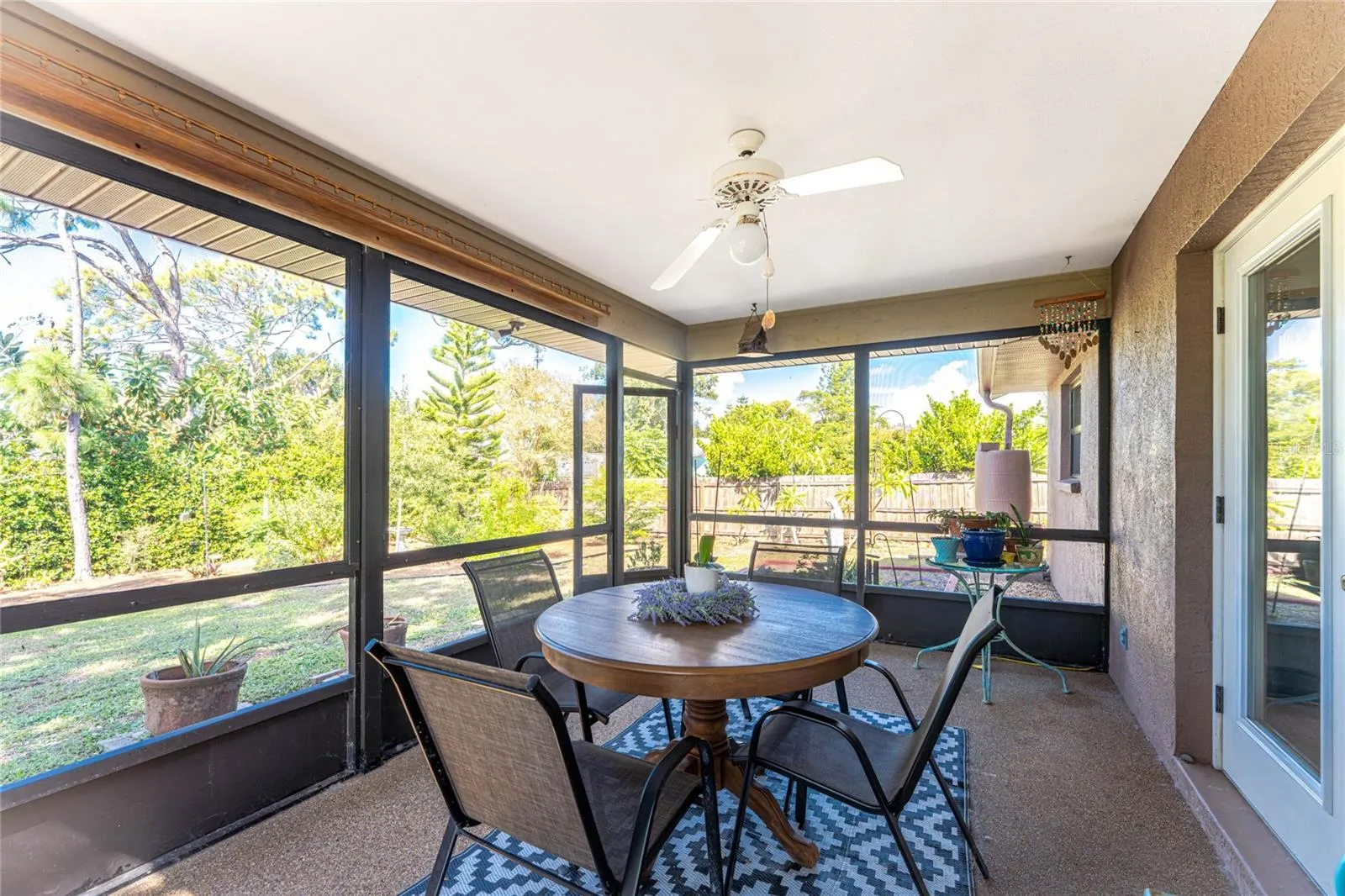 +"PublicRemarks": "Less than 3 miles to Englewood Beach – what a fantastic location! This charming 2-bedroom + den, 2-bathroom home is situated in the desirable X flood zone and features impact-rated windows, doors, and a garage door for added peace of mind. Set on a spacious lot with mature landscaping, this home offers both privacy and curb appeal with its inviting front porch and brick accents. Inside, tile flooring throughout makes maintenance a breeze. The great room has a vaulted ceiling and a large bay window, creating a bright and airy feel. The kitchen and dining areas are enhanced by vaulted ceilings with skylights, flooding the space with natural light. Stainless steel appliances, granite countertops, a pantry with built-in storage, and double French doors complete the kitchen and dining area. The adjacent den, currently used as a craft and hobby room, offers endless possibilities to suit your needs. The primary suite features a walk-in closet and an ensuite bathroom with a fully tiled step-in shower and a stylish barn-door-style vanity with a quartz countertop. A comfortable guest bedroom and bathroom provide a welcoming space for visitors. The screened-in lanai with a ceiling fan is the perfect spot to relax, enjoy outdoor dining, or unwind with a good book. Located in the heart of Englewood, this home is close to local restaurants, shopping, golf courses, walking and biking trails, and the weekly farmers market on historic Dearborn Street. Don’t miss this opportunity—schedule your showing today!"
