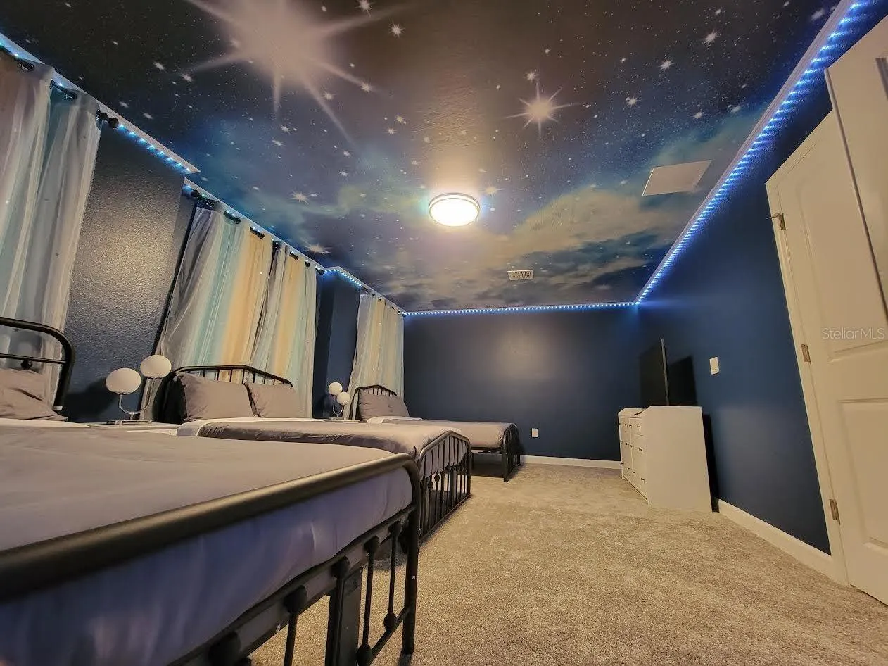 This 8 bed / 5 bath villa spans 4,289 sq ft of living space across two floors, offering a bright open living/dining/kitchen area with quartz countertop and designer appliances that open up to the pool and lake-view patio. The home offers high ceilings, multiple entertainment zones including a game room and in-home theatres, en-suite tubs and more. The home is ready for short-term rentals with professionally decorated Disney rooms and fully stocked amenities, offering a magical experience for families. Outside you will find an enclosed heated pool and spa with private tranquil lakefront views, an exclusivity in Storey Lake. \r\n