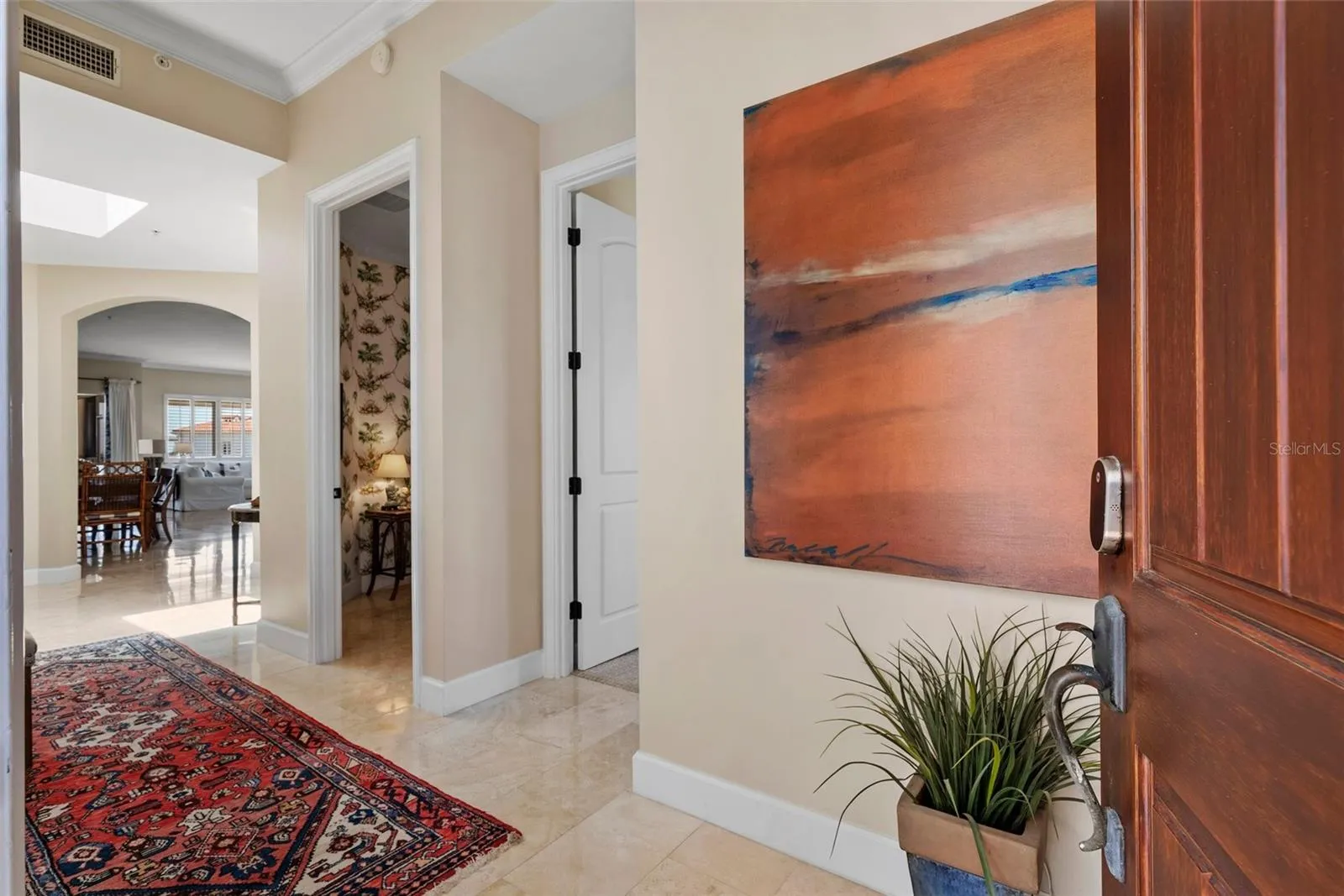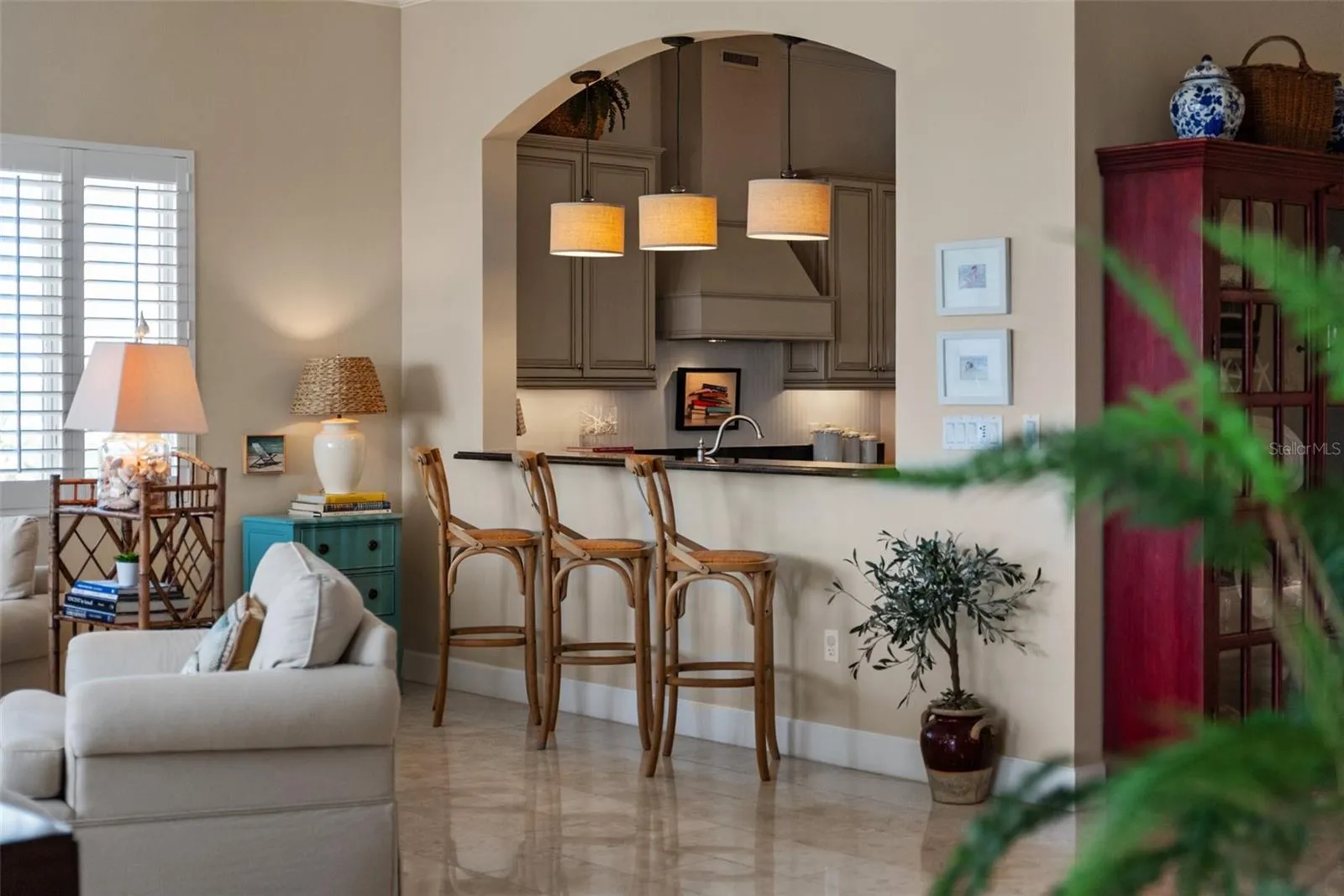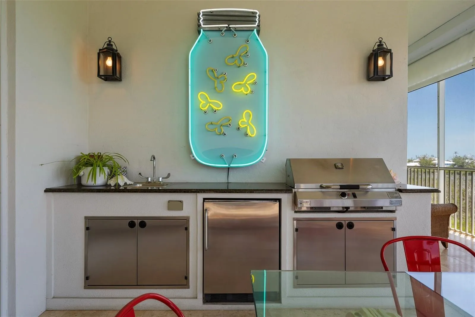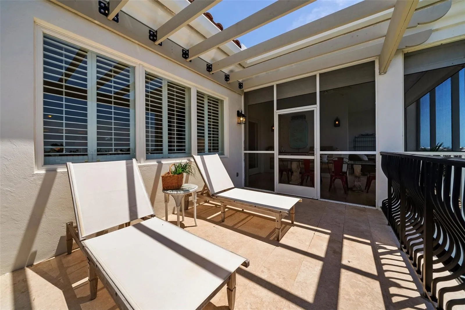 +"PublicRemarks": "One of the original, signature models for the Hacienda Del Mar development, this top floor corner penthouse was superbly designed with classic Spanish style, and filled with stunning upgrades. Sensational views of the Intracoastal Waterway and partial Gulf views that afford gorgeous sunsets. With 3 beds, 3.5 baths, 2,610 sq.ft. under air and over 3,200 total sq.ft. the property offers tremendous space and comfort. Rarely available, the corner penthouse offers immense open living spaces, a grand primary suite, all in-suite guest rooms, 11' ceilings, lots of outdoor living areas, and a massive 3+ car private garage. Many of the high-end features include premium built-in appliances, stunning travertine stone flooring, custom wood cabinetry, granite and marble counter tops, crown molding, built-in shelving, a wet bar with wine fridge, elegant draperies and plantation shutters. The Hacienda buildings were built to the high coastal construction standards. Outdoor living areas include a large screened lanai with an outdoor kitchen, a pergola covered open terrace and another open terrace that?s accessed from both the kitchen and a guest bedroom. The property offers great piece of mind with elite Andersen impact rated windows and sliders, and additional protection with motorized roll down hurricane shutters on the lanai. Many of the elegant furnishings are negotiable. Hacienda offers an incredible tropical setting with 23 acres of refined landscaping, paver sidewalks, first-class amenities that include 2 resort style swimming pools, spa, fitness center, tennis and pickle ball courts, and magnificent waterfront clubhouse. The community is close to marinas, serene sandy beaches, State parks, restaurants, shopping and historic Boca Grande."