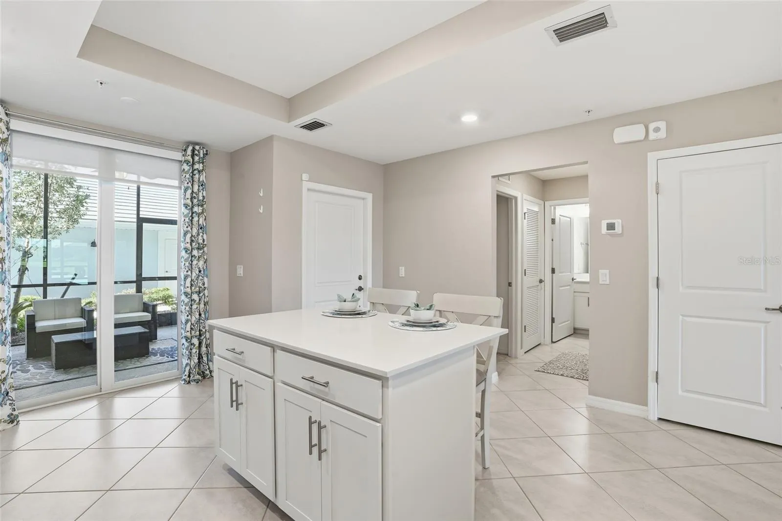 The spacious kitchen impresses with quartz countertops, two islands, abundant cabinetry, and stainless-steel appliances. A sliding door leads to the front lanai, enhanced with stylish drapes and an ELECTRONIC ROLLER SHADES. The living room enjoys the same premium window treatments, opening out to the serene back lanai. Both the living room and den feature sleeper sofas, offering plenty of space for visiting family and friends.\r\n