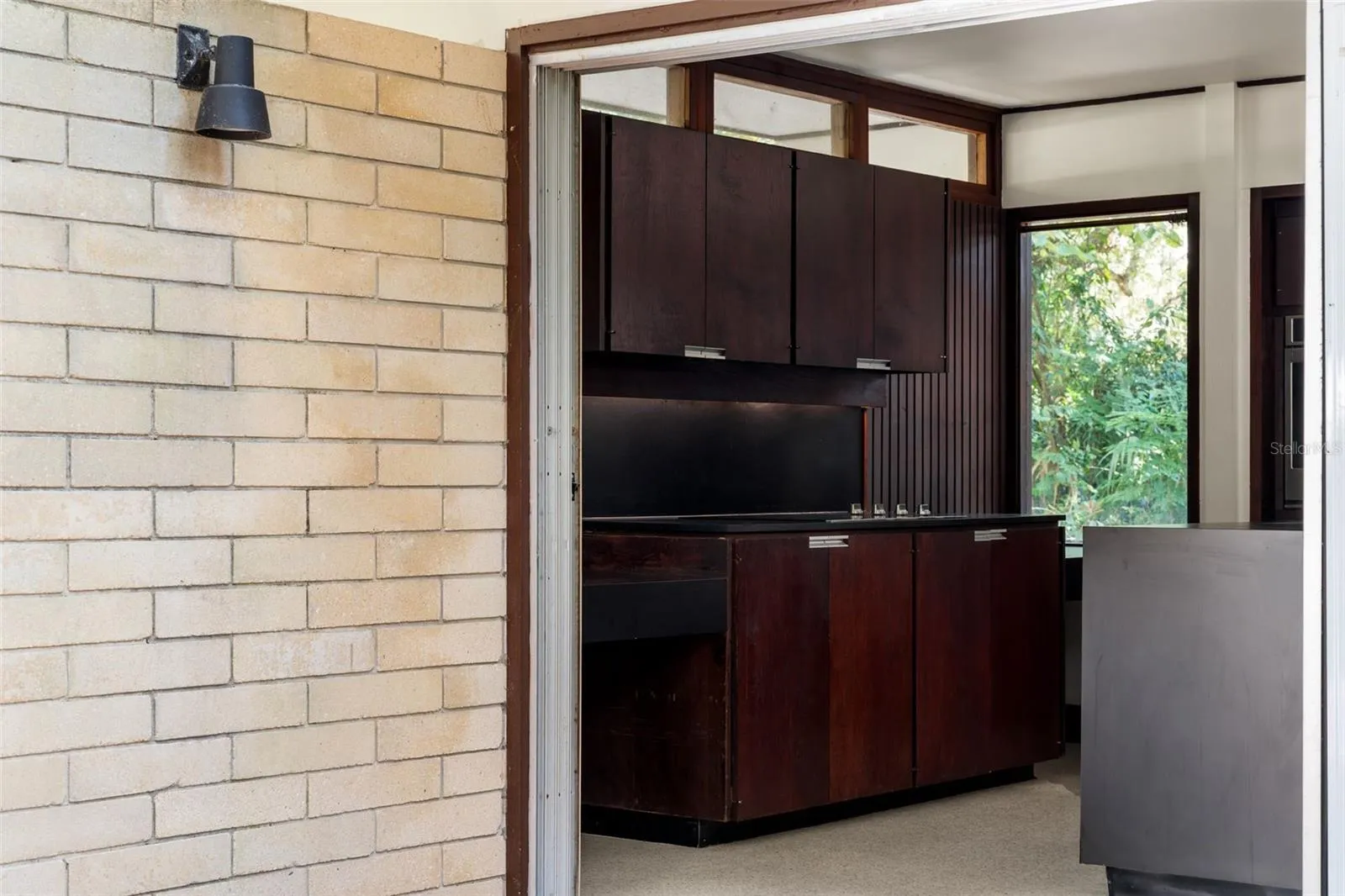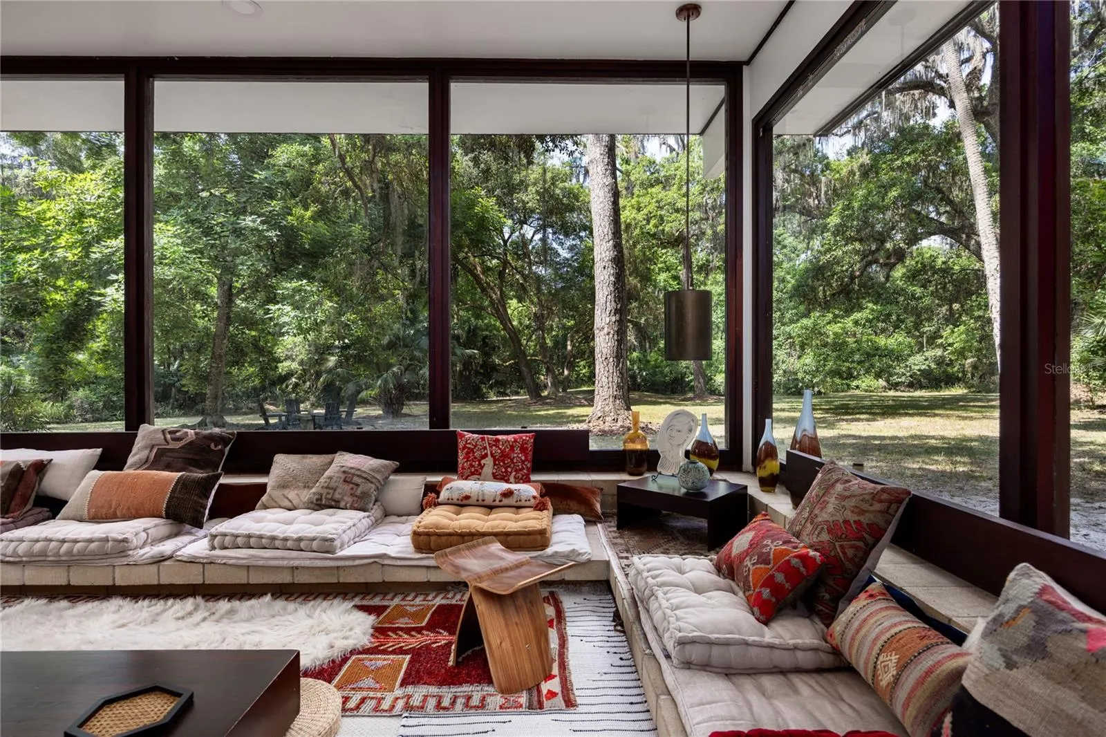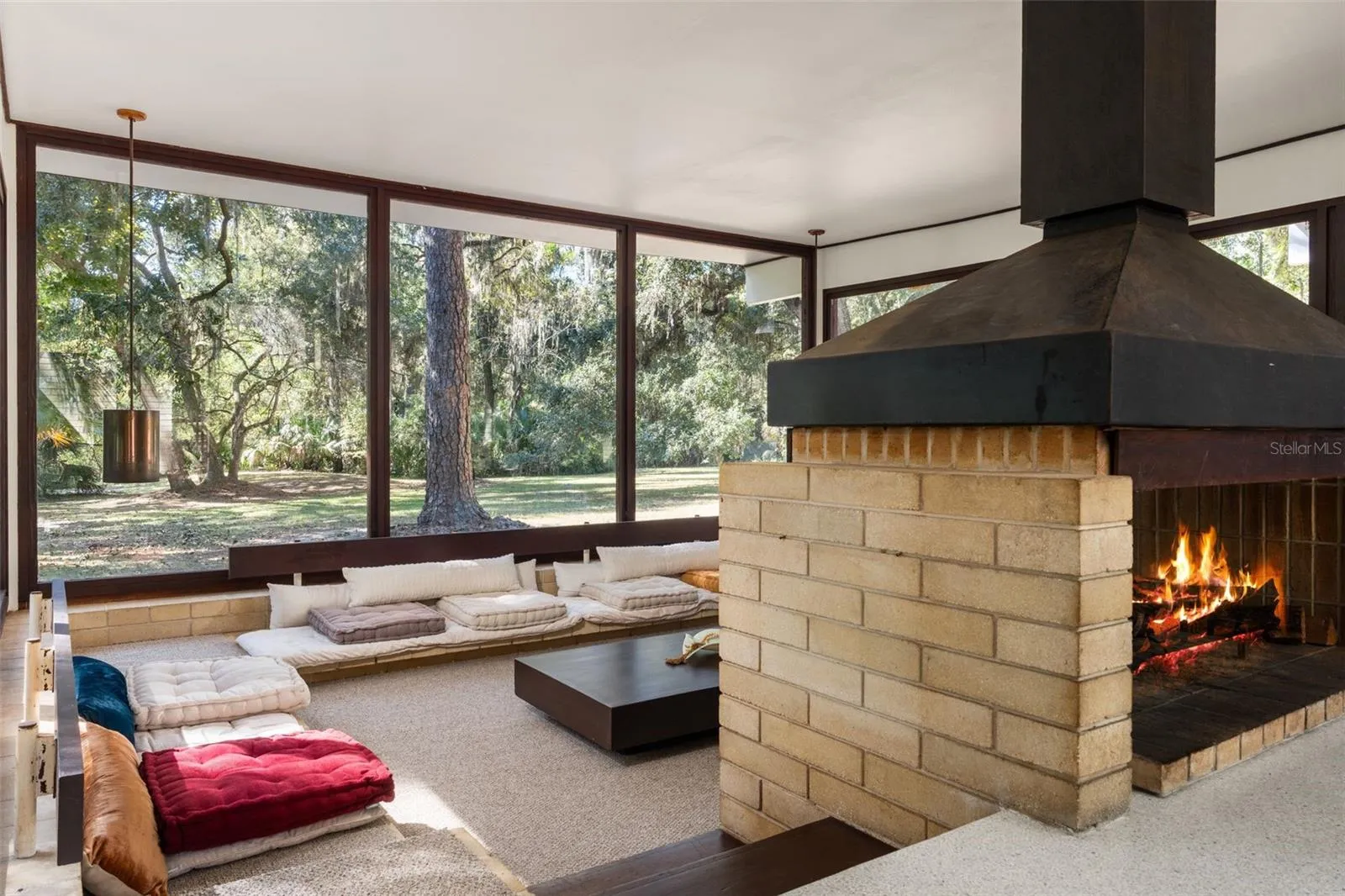 +"PublicRemarks": "Welcome to the Haynes Residence—an iconic 1966 masterpiece by famed architect Harry Merritt, and arguably Gainesville’s most pristine example of true Mid-Century Modern architecture. Now, this extraordinary property can be yours. In the spirit of Frank Lloyd Wright, Merritt designed homes that didn’t simply sit within the landscape, but became part of it. Those sensibilities are on full display here: the exterior is wrapped in rich redwood siding, accented with Ocala block, and thoughtfully arranged around a breathtaking 350-year-old live oak. Walls of glass blur the lines between the nearly 2-acre sanctuary of a lot and the home’s interior, creating a seamless dialogue with nature from every room. Designed by a professor of architecture and meticulously restored over the past four years by the Director of the University of Florida’s School of Architecture, the home balances period authenticity with refined modern comfort. The kitchen is a warm, sophisticated showpiece featuring cabinetry crafted from the same wood used on the exterior, waterfall-edge countertops, designer geometric wallpaper, and an iconic Kelly Wearstler chandelier. A wall of sliding glass doors opens to an al-fresco dining space, reinforcing the home’s effortless indoor–outdoor living. The dining room is anchored by a George Nelson bubble chandelier and a custom built-in bar wrapped in bold Gucci tiger-face wallpaper. Just beyond, the dramatic sunken living room takes center stage. With its bespoke metal-hooded Ocala-block fireplace, custom conversation-pit coffee table and pendant lighting, and 360 degrees of windows framing views of untouched forest, this space feels both sculptural and serene—an unforgettable architectural experience. The private wing of the home offers a second, more intimate living room, two spacious guest bedrooms, a fully renovated guest bath, a laundry room, and a beautiful home office that connects directly to the primary suite. The primary bedroom features a striking redwood accent wall, clerestory windows, a vanity area, and a full-length closet that, like the guest bedroom closets, incorporates a California Closets system and original redwood Pella accordion doors. Through the completely renovated primary bath, the office connects back to the main courtyard and features built-in shelving, under-cabinet lighting, and another full wall of sliding glass doors. Extensive upgrades ensure the home is as functional as it is beautiful: a new commercial-grade roof, restored eaves, updated electrical and plumbing systems, fresh paint, and meticulously restored terrazzo floors result in a residence that feels renewed, refined, and ready for its next steward. The home also includes two septic systems and a well with a water purification system. The property itself is serene, low-maintenance, and profoundly connected to its natural setting. The towering tree canopy, filtered light, and the quiet movement of wildlife create an atmosphere of privacy and peace rarely found so close to the heart of Gainesville. The Haynes Residence is more than a home—it is a work of art, an architectural treasure, and a living testament to timeless Mid-Century Modern design."
