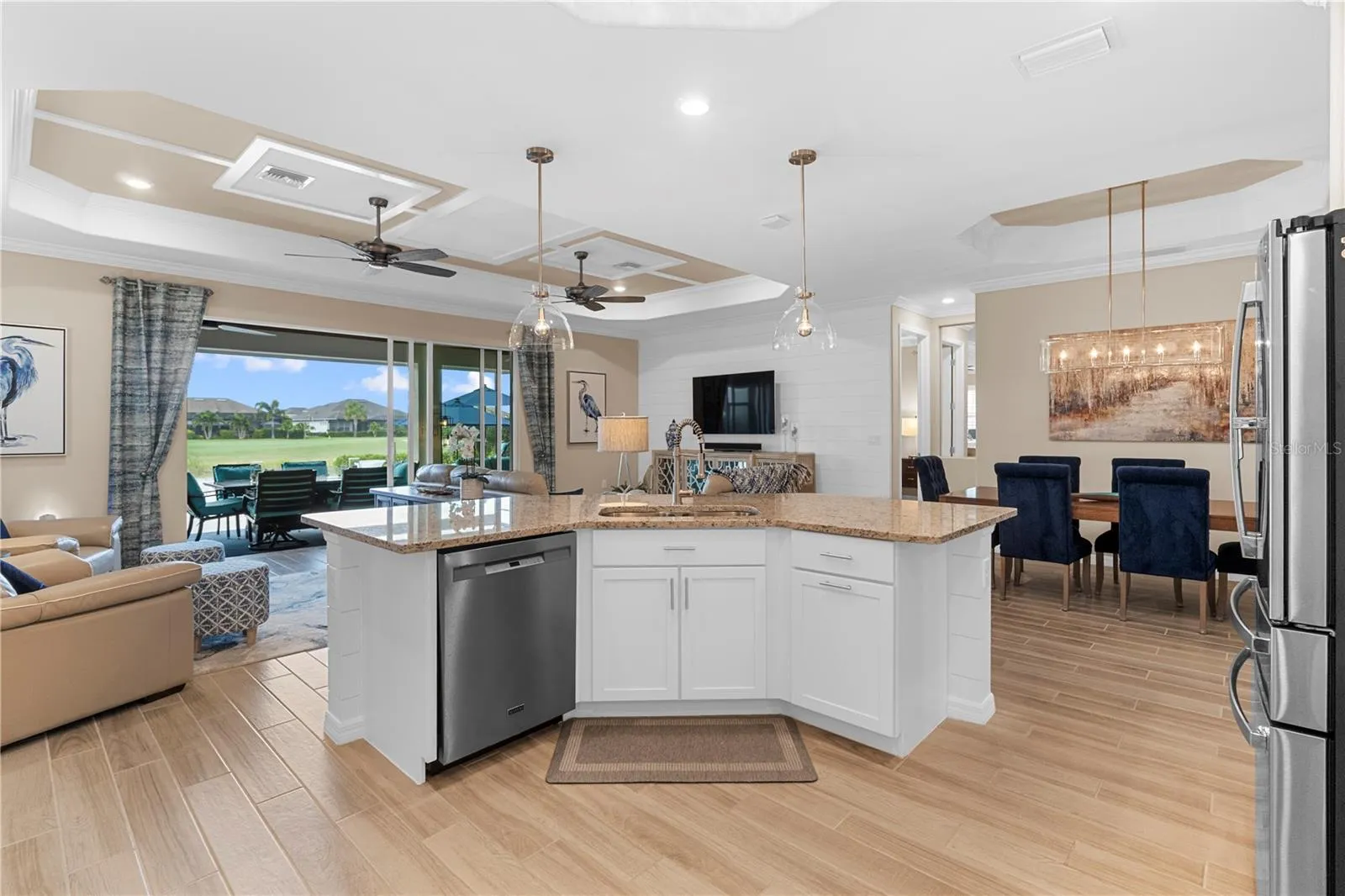 +"PublicRemarks": "Welcome to one of the most breathtaking GOLF DEEDED homes with a CUSTOM heated saltwater infinity-edge pool and cascading water that blends seamlessly into the serene lake, showcasing an unobstructed lake & golf view on the 12th hole with NO CART PATH behind the property, ensuring serene privacy and postcard-perfect sunsets every evening. THIS HOME HAS $225,000 in custom upgrades, this residence blends refined interior selections, standout architectural features, and an extraordinary resort-style outdoor living experience that truly sets it apart from ANYTHING ELSE ON THE MARKET. Designed for those who crave LUXURY outdoor living, the expansive west-facing pool retreat was expertly crafted to highlight mesmerizing water and golf views while capturing every glowing sunset over the pond. Enjoy therapeutic spa jets that melt away tension, a stylish sun shelf with two loungers, and multicolor LED lighting that transforms the space into a glowing nighttime escape. Elevated glass water bowls add movement, sophistication, and the soothing sound of flowing water, while two built-in swim-up barstools ensure a fun and functional resort feel. Complementing the pool is a granite outdoor kitchen with premium finishes, including a marble backsplash and a high-end Blaze grill, ideal for hosting gatherings or preparing a relaxing meal poolside. Overhead, the tongue-and-groove wood lanai ceiling adds warmth and architectural richness, elevating the space to the feeling of a luxury retreat. Absolutely gorgeous chef kitchen with GE profile French door refrigerator and 42 inch cabinets, full shaker overlay and huge kitchen island with walk-in pantry. Plank tile flooring and crown molding throughout the entire house with NO CARPET. Included in the sale are the mounted TVs and wall-mount systems in the great room, den, and lanai. The floor plan flows beautifully, with CUSTOM PAINTED WALLS, beautiful light fixtures and window treatments including elegant draperies, shades, and plantation shutters, offering both spacious open living areas. With all interior furnishings and décor negotiable. This lanai was also designed for year-round protection and comfort, featuring a full Storm Smart hurricane-rated enclosure system, allowing you to secure the outdoor space with ease during storm season. Even the backyard has lush landscaping for privacy and best of all—all outdoor furnishings and décor are INCLUDED in the listing price. Even the garage has been elevated far beyond builder standard. Features include: A newly installed built-in storage wall system, Custom workbench area, Overhead safe-rack storage, Epoxy flooring for a clean, polished look and a garage refrigerator. Enjoy living in Babcock Ranch, America's first entirely solar-powered town, with access to multiple community pools, nature trails, with shopping and dining. Beautiful parks and amenities let you experience SW Florida at its finest! Come live a better life at Babcock Ranch!"
