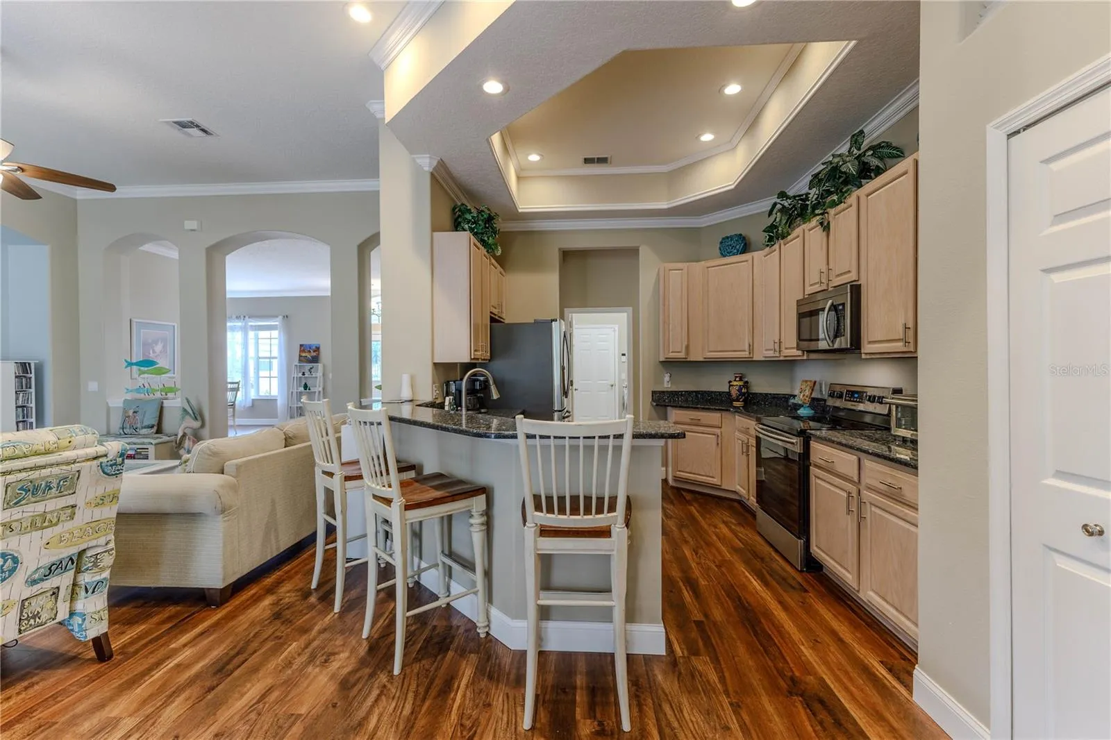 +"PublicRemarks": "Stunning 4-Bedroom, 3-Bathroom, 3-Car Garage Home in The Wellington 55+ Community Welcome to this beautifully maintained and impressively updated residence, located on a cul de sac, in the highly sought-after, guard-gated 55+ community of The Wellington. Offering a spacious four-bedroom, three-bath, three-car garage layout with a desirable three-way split floor plan, this home delivers both privacy and comfort. Step through the double-door leaded-glass entry into a bright formal dining area and a versatile flex room, currently used as an office. The expansive great room features recessed lighting, a ceiling fan, sleek luxury vinyl plank flooring, and wide sliding glass doors that open to a covered and screened lanai—ideal for year-round Florida living. The great room flows seamlessly into the kitchen, complete with tray ceilings, canned lighting, 42'' wood cabinetry, granite countertops, pantry and stainless steel appliances (2018) The secluded main suite is a true retreat, highlighted by tray ceilings, abundant natural light, and a ceiling fan. The updated (2025) en suite bathroom offers two large vanities, a soaking tub, a separate tiled shower, private water closet, and two walk-in closets. A private rear bedroom overlooks the serene retention pond area and is steps from a full bath with direct lanai access. Bedrooms three and four offer vaulted ceilings, spacious closets, ceiling fans, and charming details such as chair rail molding. A third full bathroom serves this wing with a tub/shower and wainscoting. The inside laundry room includes the washer & dryer (2018), storage cabinets, utility sink, and upgraded 20'' tile flooring. The home also features 10-foot ceilings, crown molding, 5-inch baseboards throughout, whole house water filter and a built-in central vacuum system. The garage has built in storage and pull-down stairs to access the attic. Notable Upgrades and Updates: New roof (2024) New tiled front entry, coach lights & driveway concrete stain (2025) Main bathroom renovation (2025) Samsung refrigerator, attic ladder (2025) New LED lighting fixture (2025) Rheem water softener (2025) Five low-E rear-facing windows (2023) Flagstone patio pavers (2020) Trane HVAC system (2020) with warranty. New screen on single garage door (2019) Rheem tankless water heater (2019) 20'' tile floors in laundry & all baths (2018) The Wellington is a premier 55+ deed-restricted community offering a vibrant lifestyle with a clubhouse, restaurant & bar, pickleball, billiards, fitness center, heated pool & spa, clubs, activities, and more. Spectrum cable and internet included in HOA. This home combines elegance, functionality, and a long list of high-value updates—making it truly move-in ready. Don't miss your chance to enjoy resort-style living in one of Hernando County's most desirable communities."