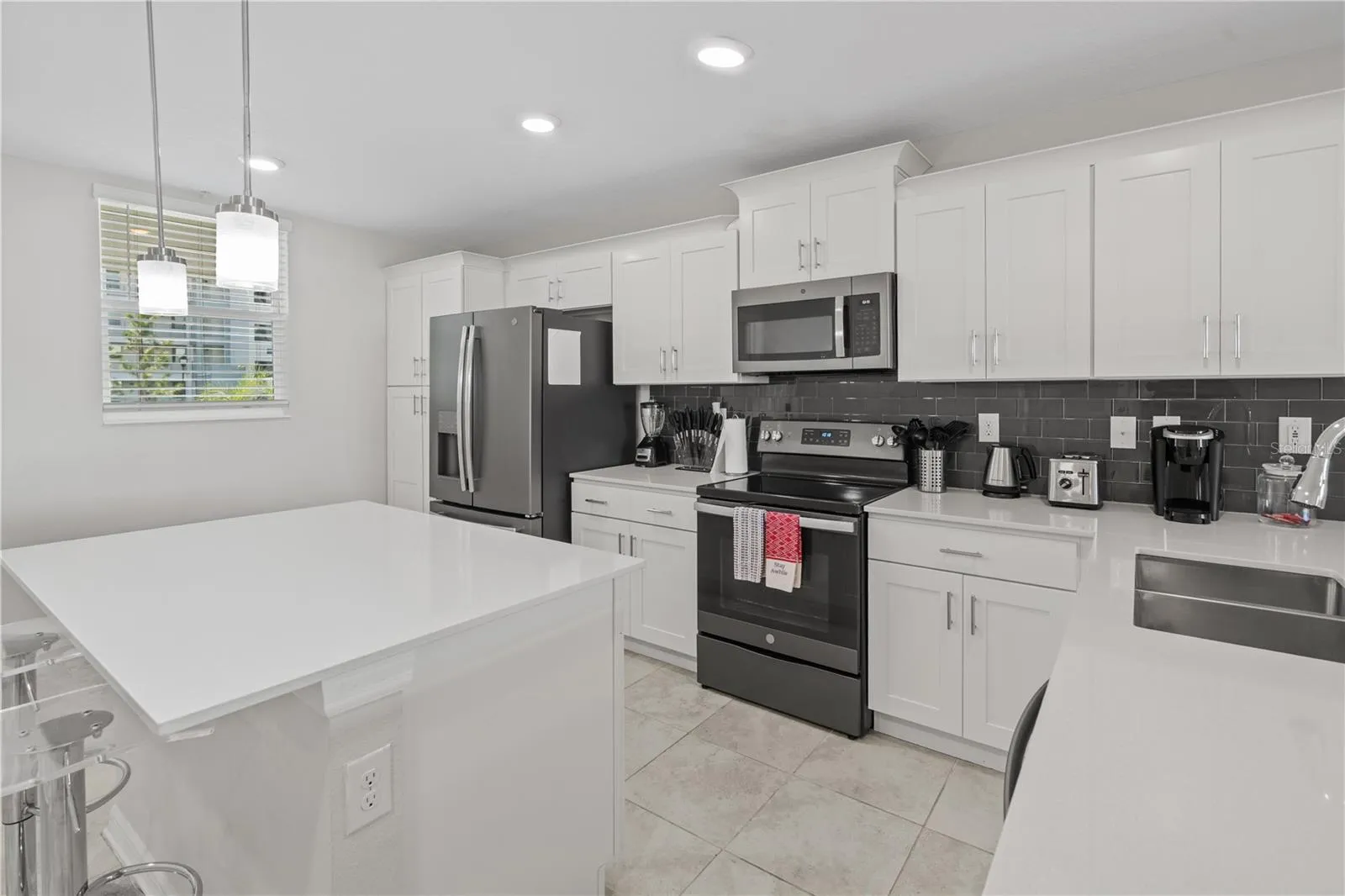 Designed with both elegance and functionality in mind, the interior boasts tile flooring throughout the main living areas, plush carpeting in the bedrooms, and an open-concept layout. The contemporary kitchen is a standout, showcasing granite countertops, white cabinetry, and sleek stainless steel appliances.\r\n