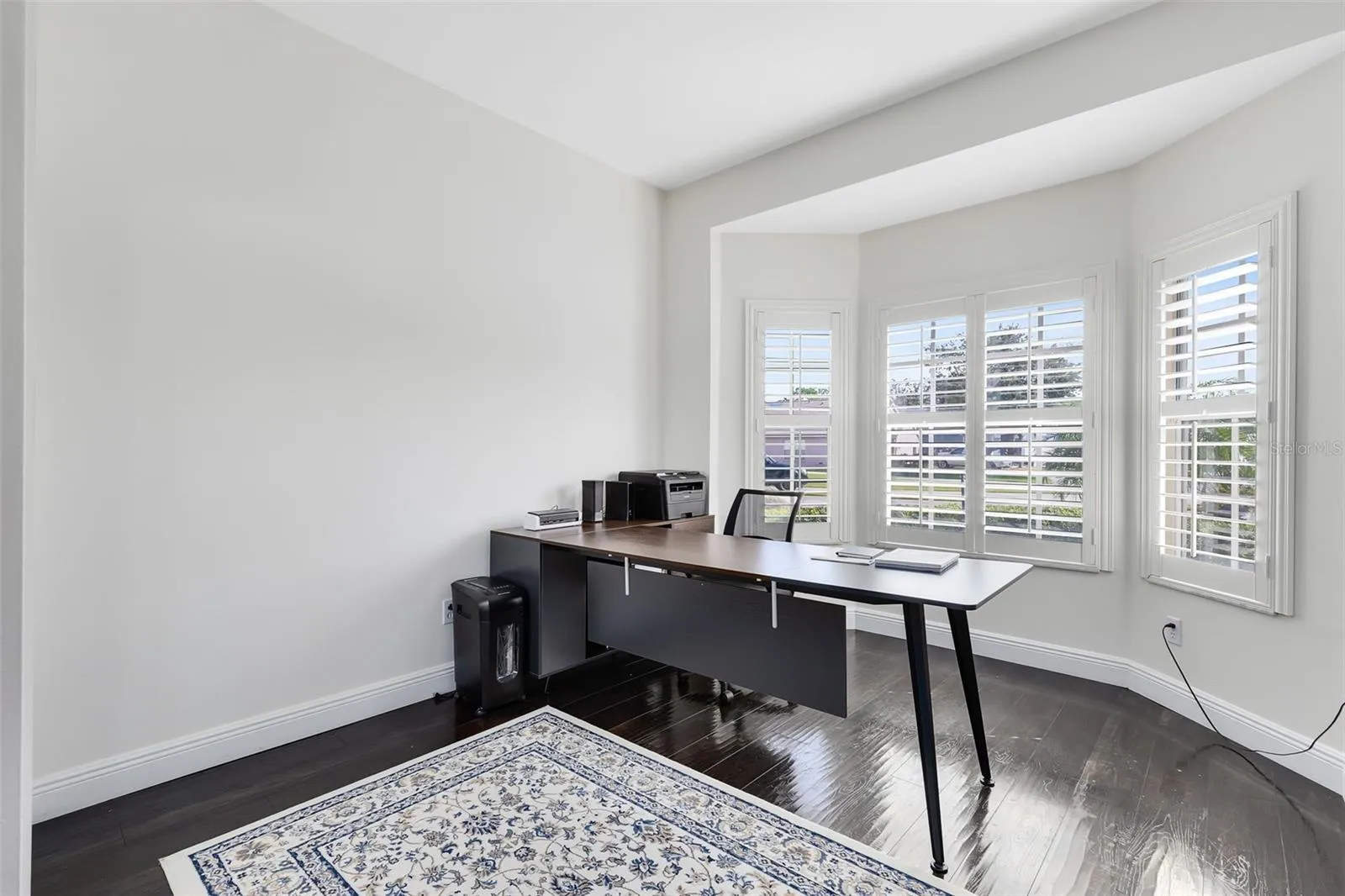 The main-floor master suite offers direct access to the patio and pool, along with dual closets and a luxurious en suite bathroom featuring a garden tub, dual vanities, and a walk-in shower with dual shower heads. Also downstairs, the flexible office/den provides space for work or play.\r\n